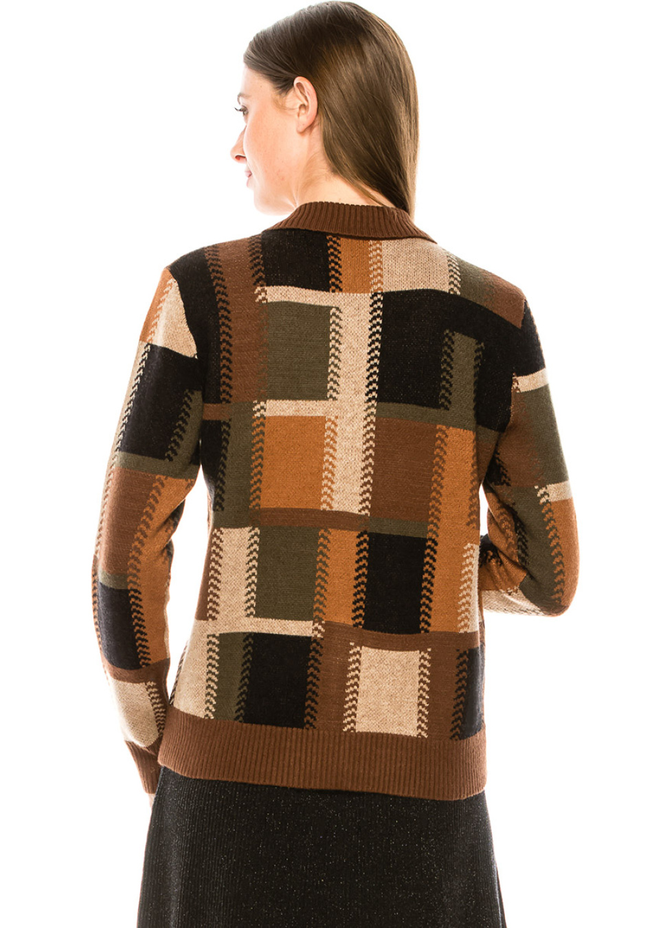 Olive Touch: High Neck Knit with Color Block Design