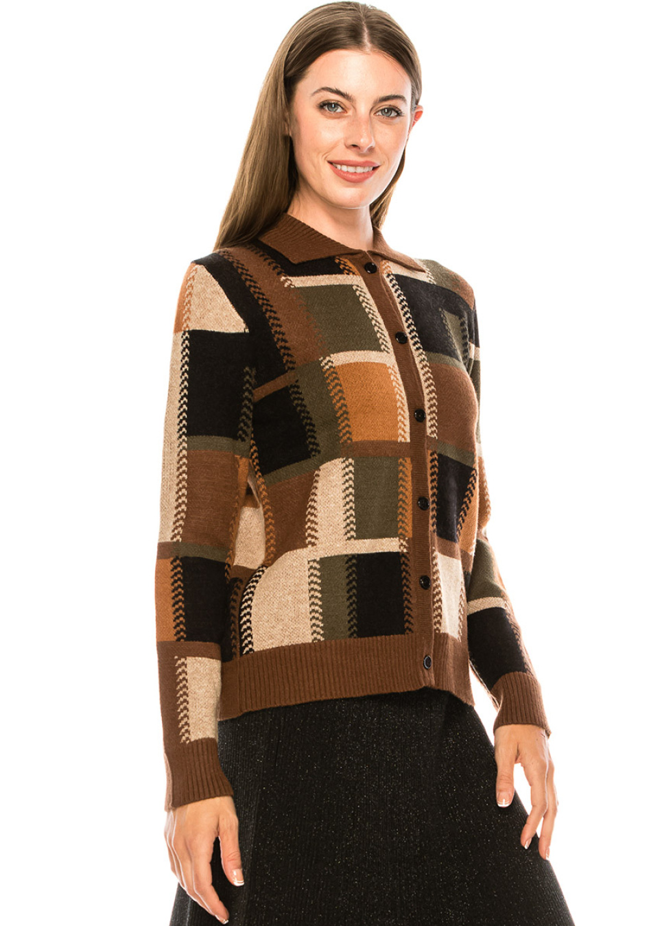 Checkered cardigan with shirt collar
