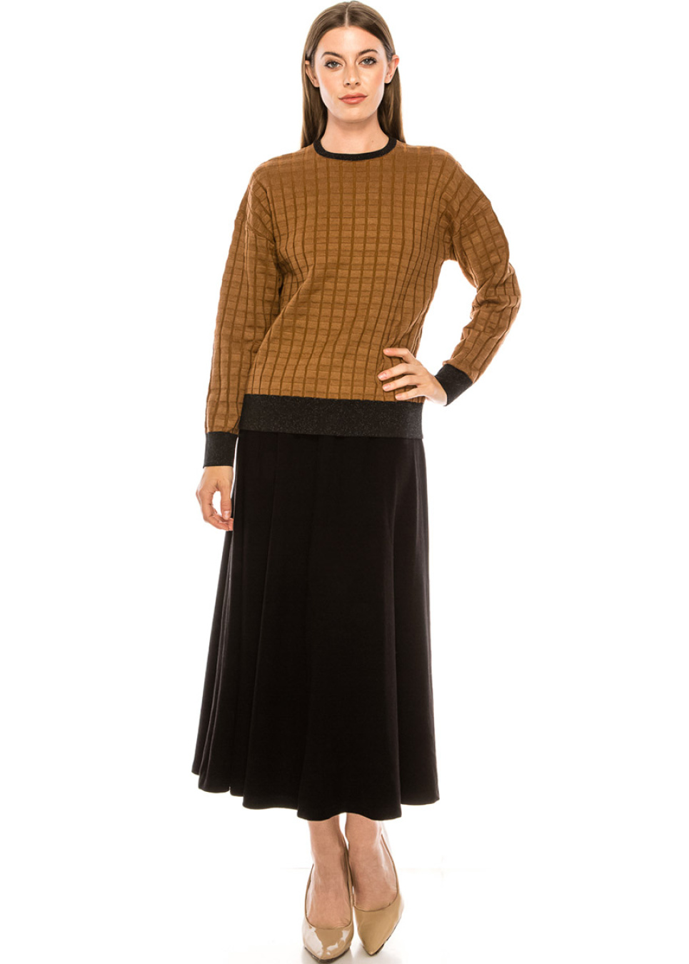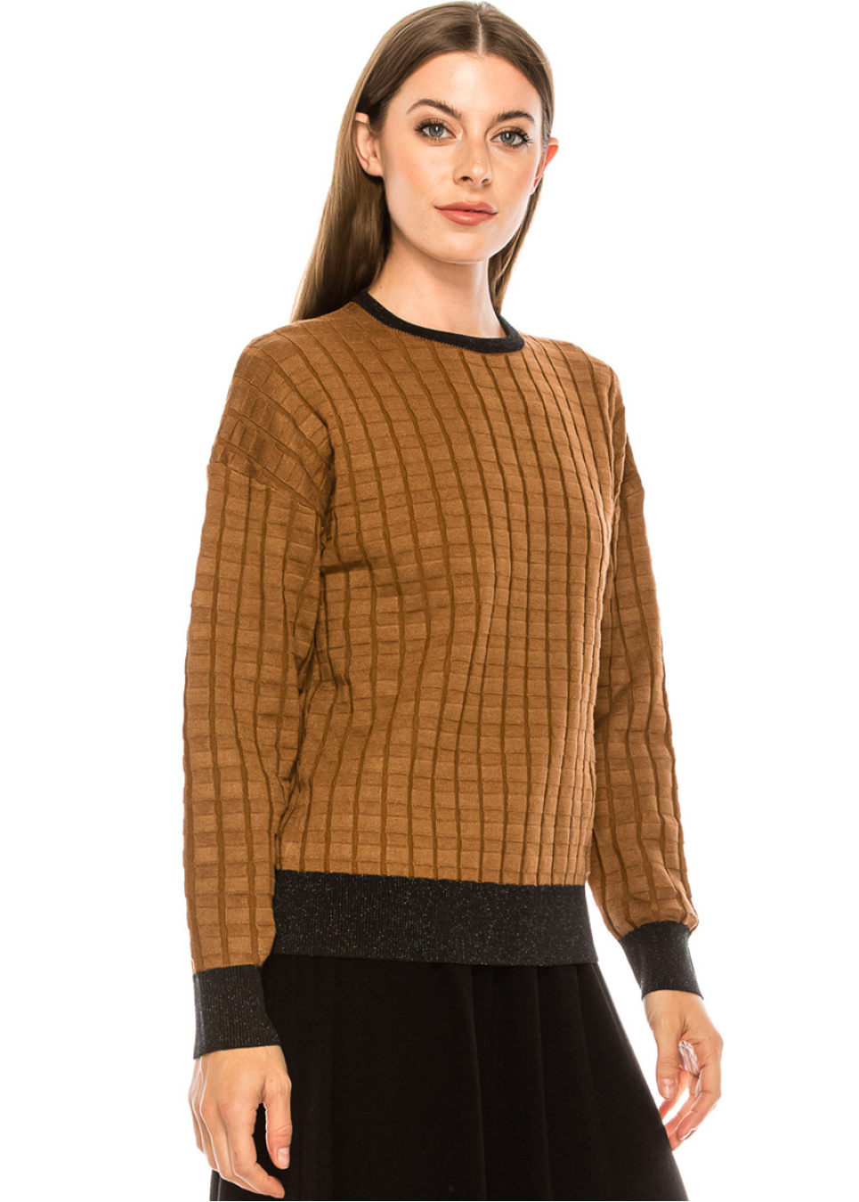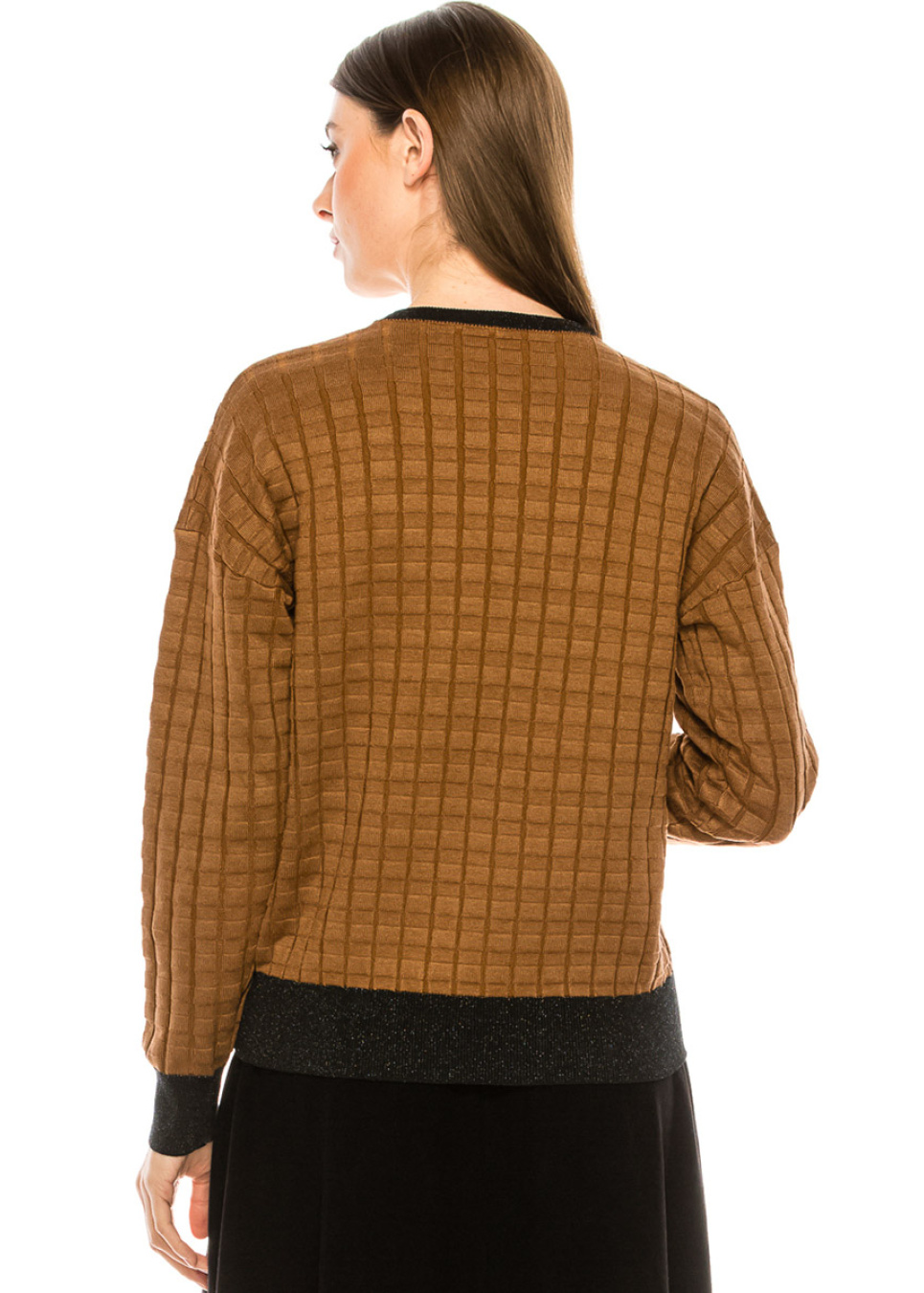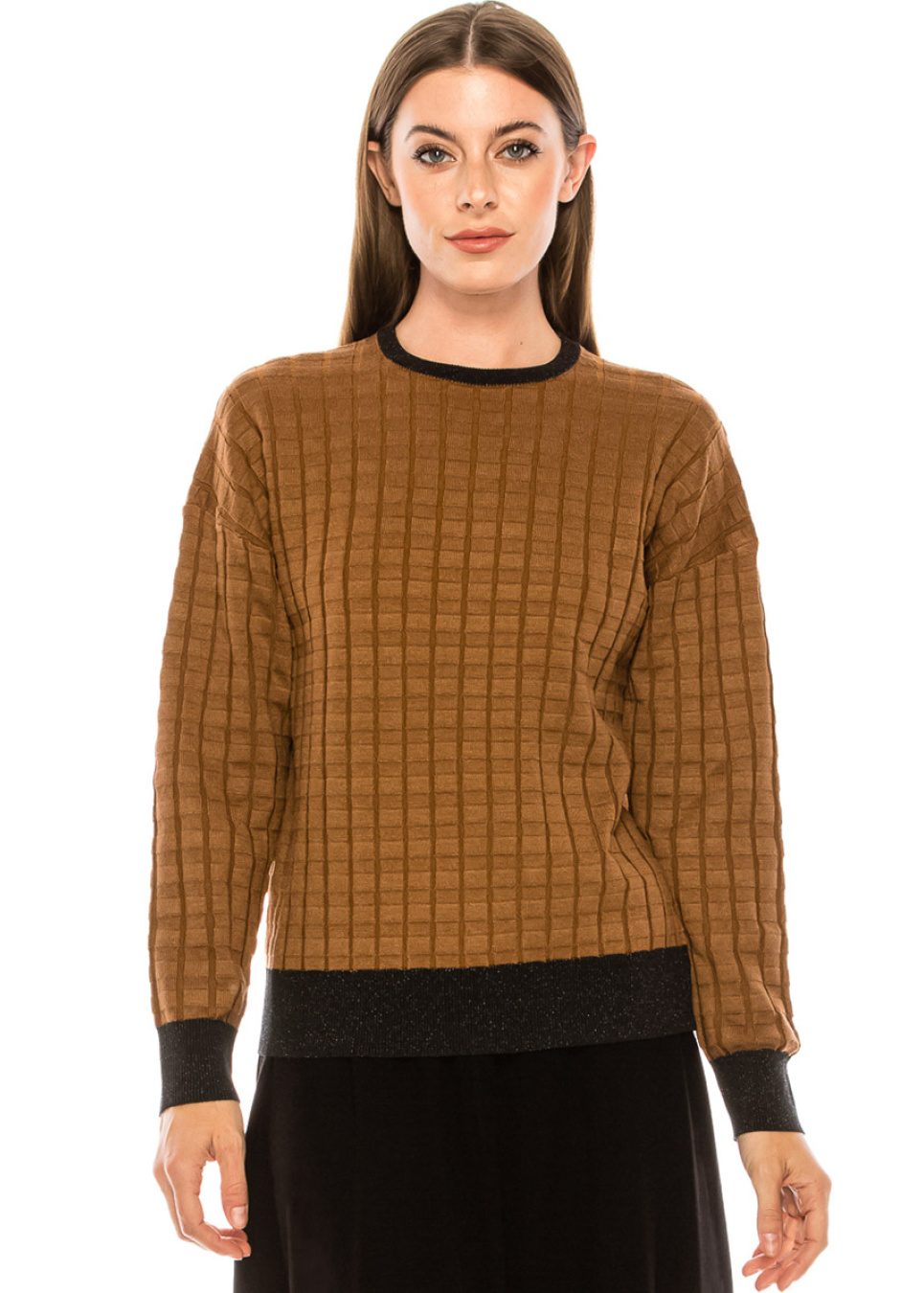 Crafted from a high-quality fabric in a camel color, this casual sweater is given a contemporary finish with black edges and a checkered texture. Due to the relaxed fit, the item won't restrict your movements.