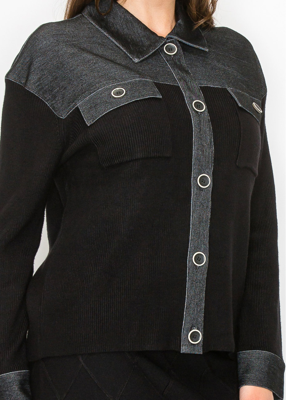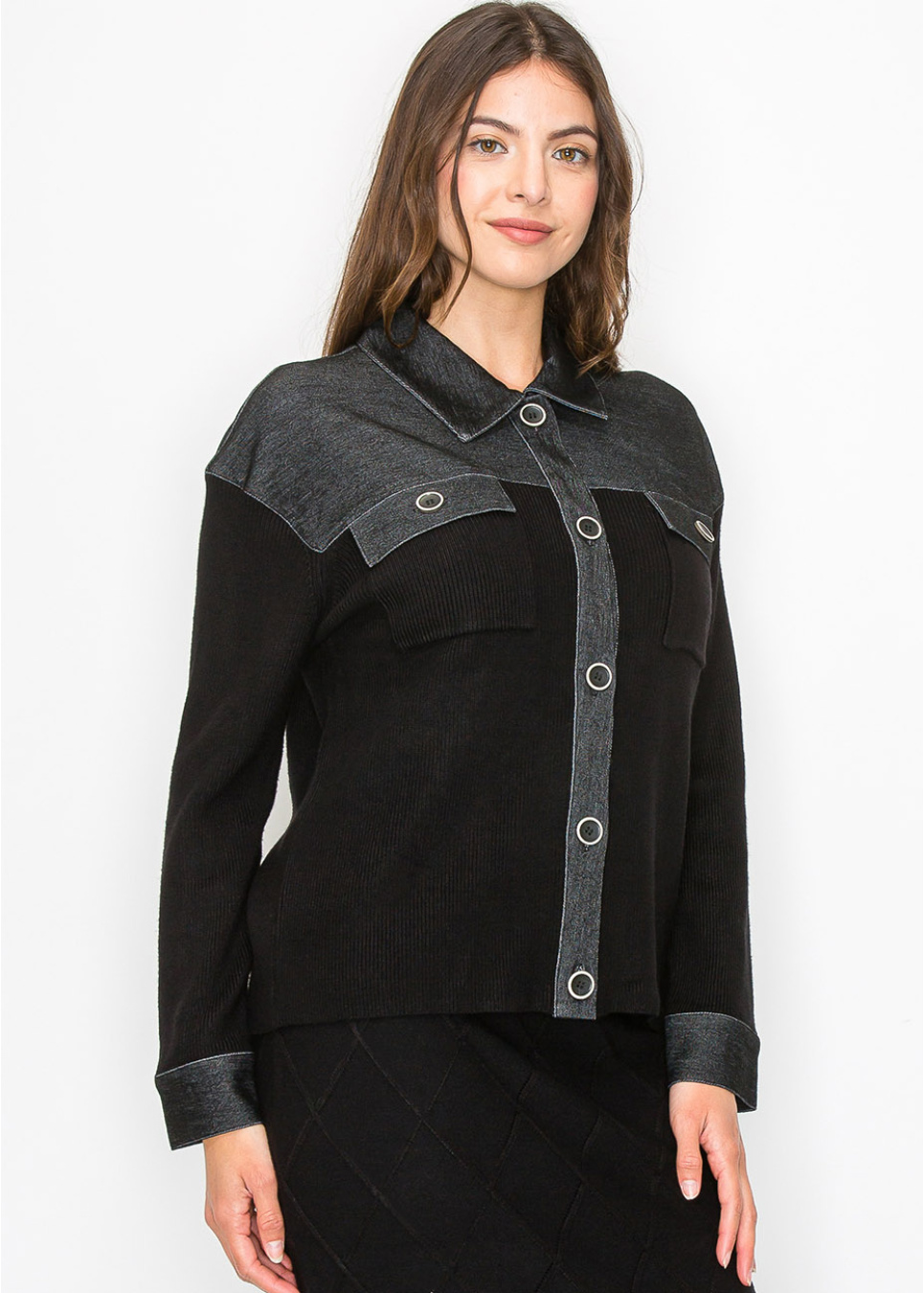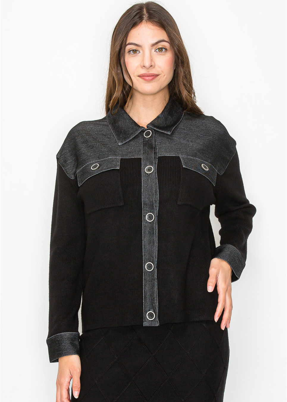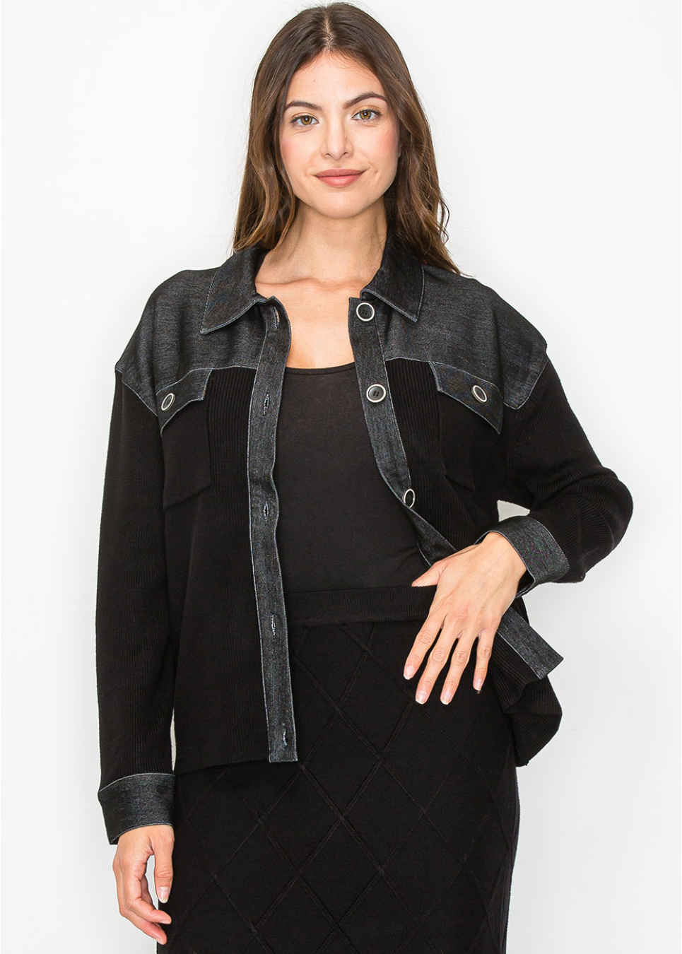 Meet your new favorite cardigan with a twist. The buttoned front and denim-inspired trim add a modern edge to a classic, giving you a layered look that’s perfect for any season. The soft fabric feels just right – not too heavy, not too light – and it’s designed to keep you comfortable all day long. Whether you’re running errands or going out to dinner, this sweater blends style with modest coverage beautifully.