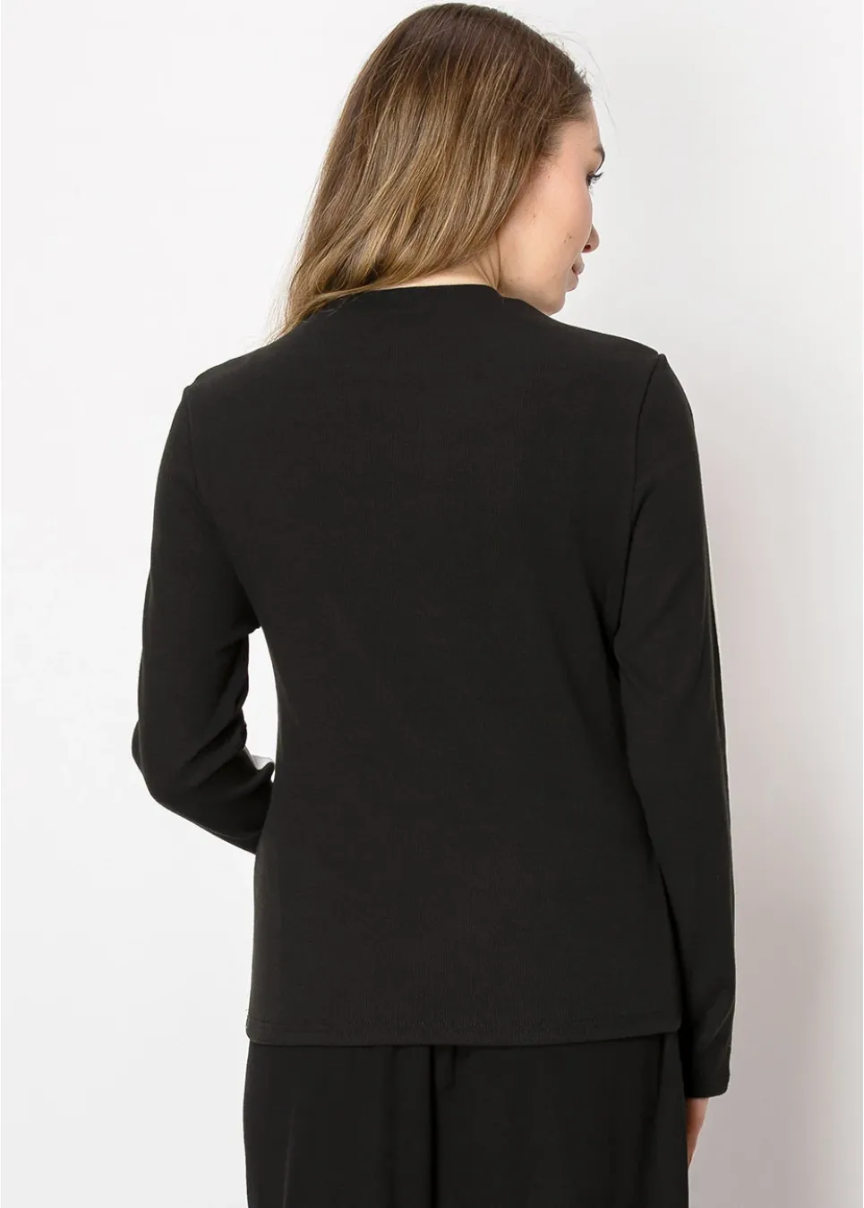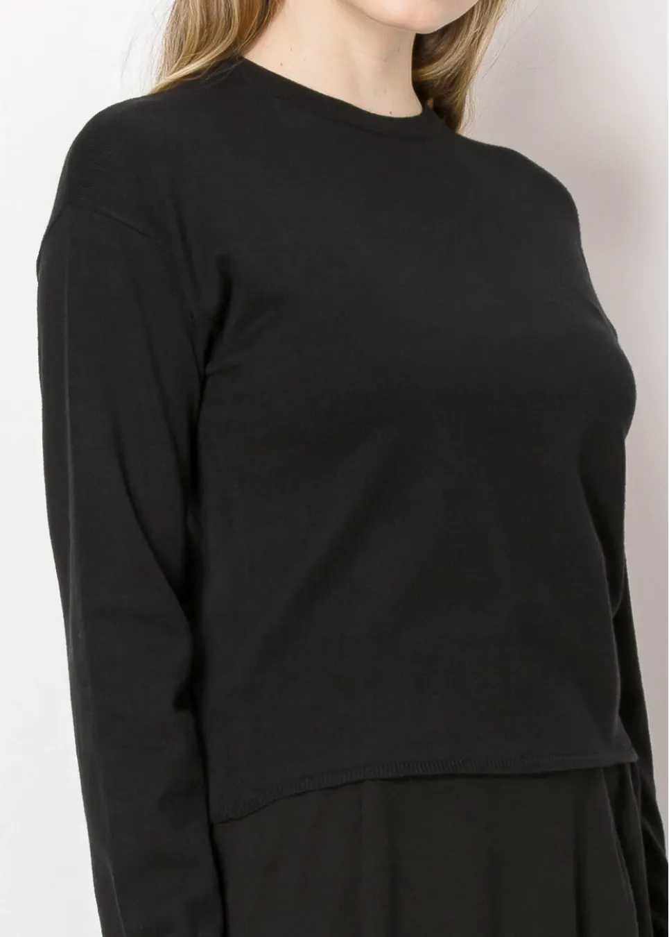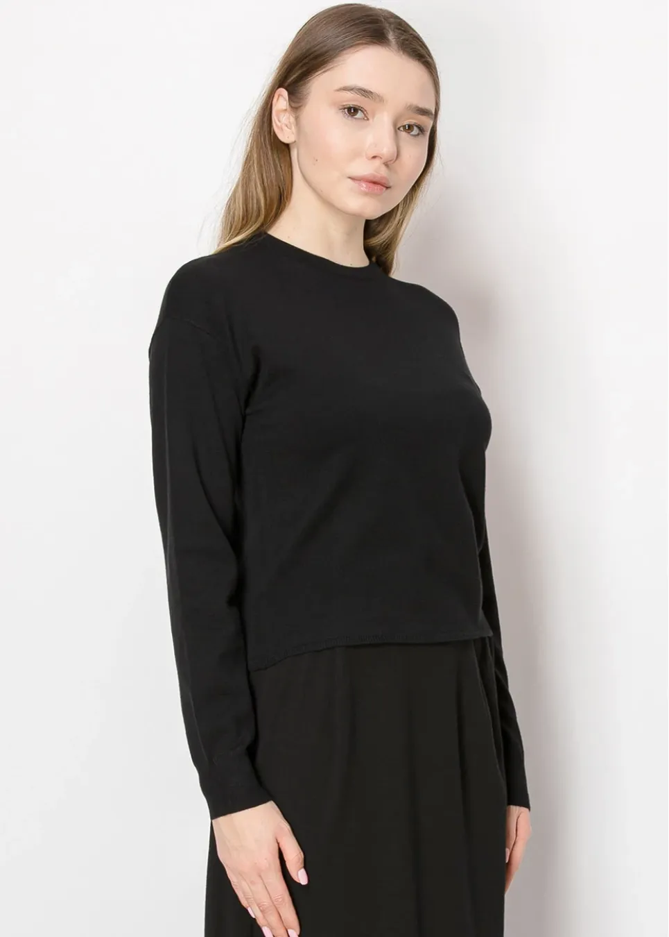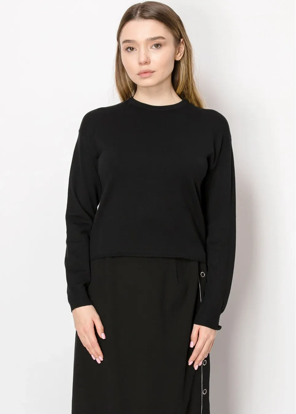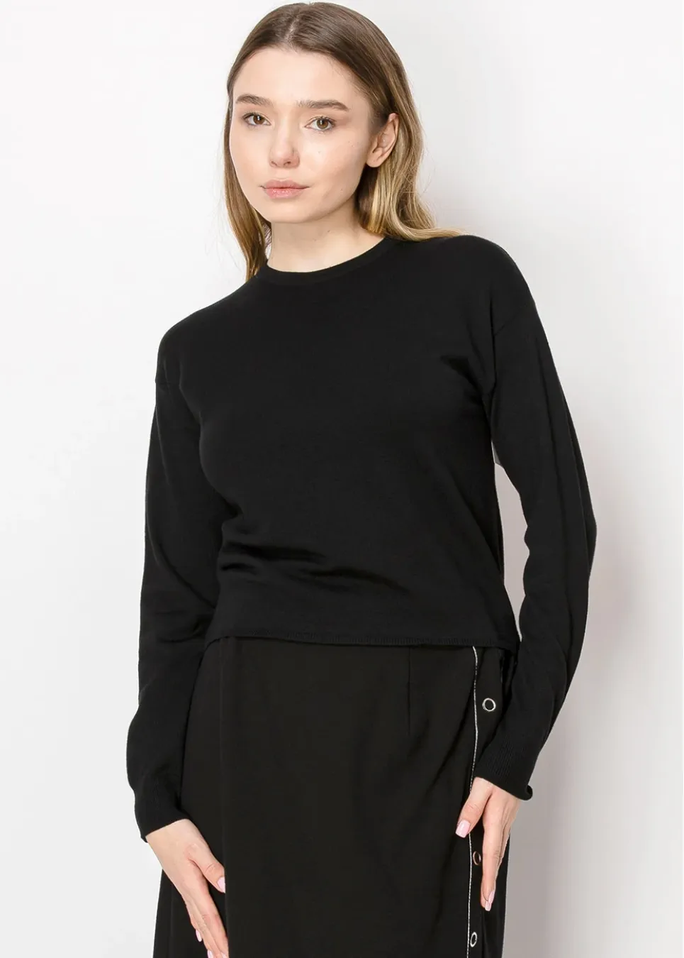 A wardrobe essential, this black pullover is all about simplicity and comfort. The soft knit fabric and clean design make it perfect for layering or wearing on its own.