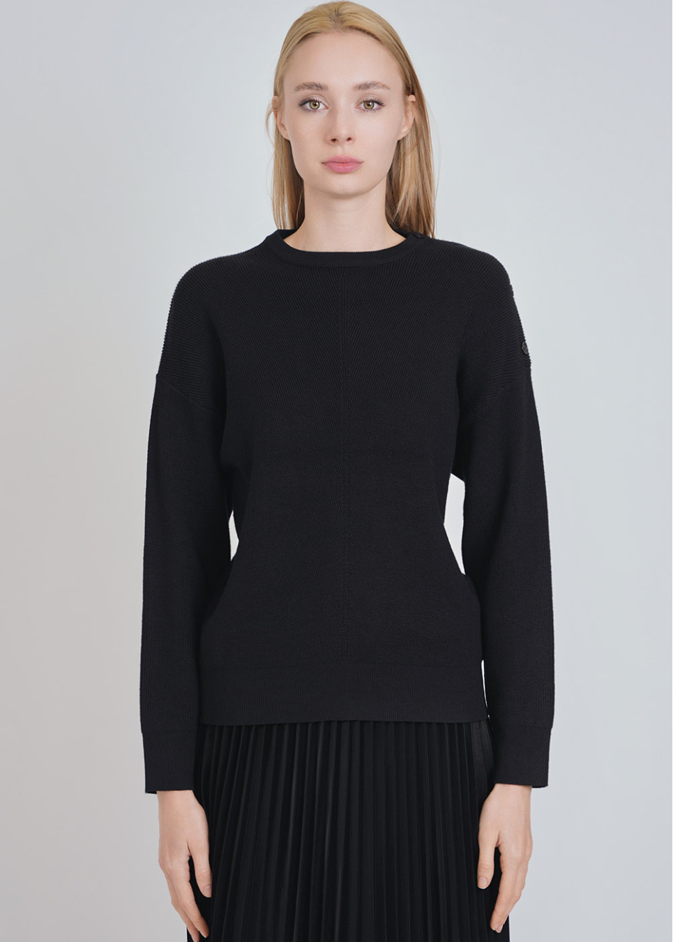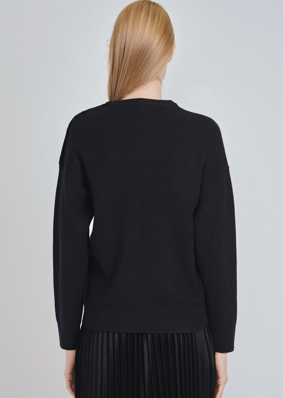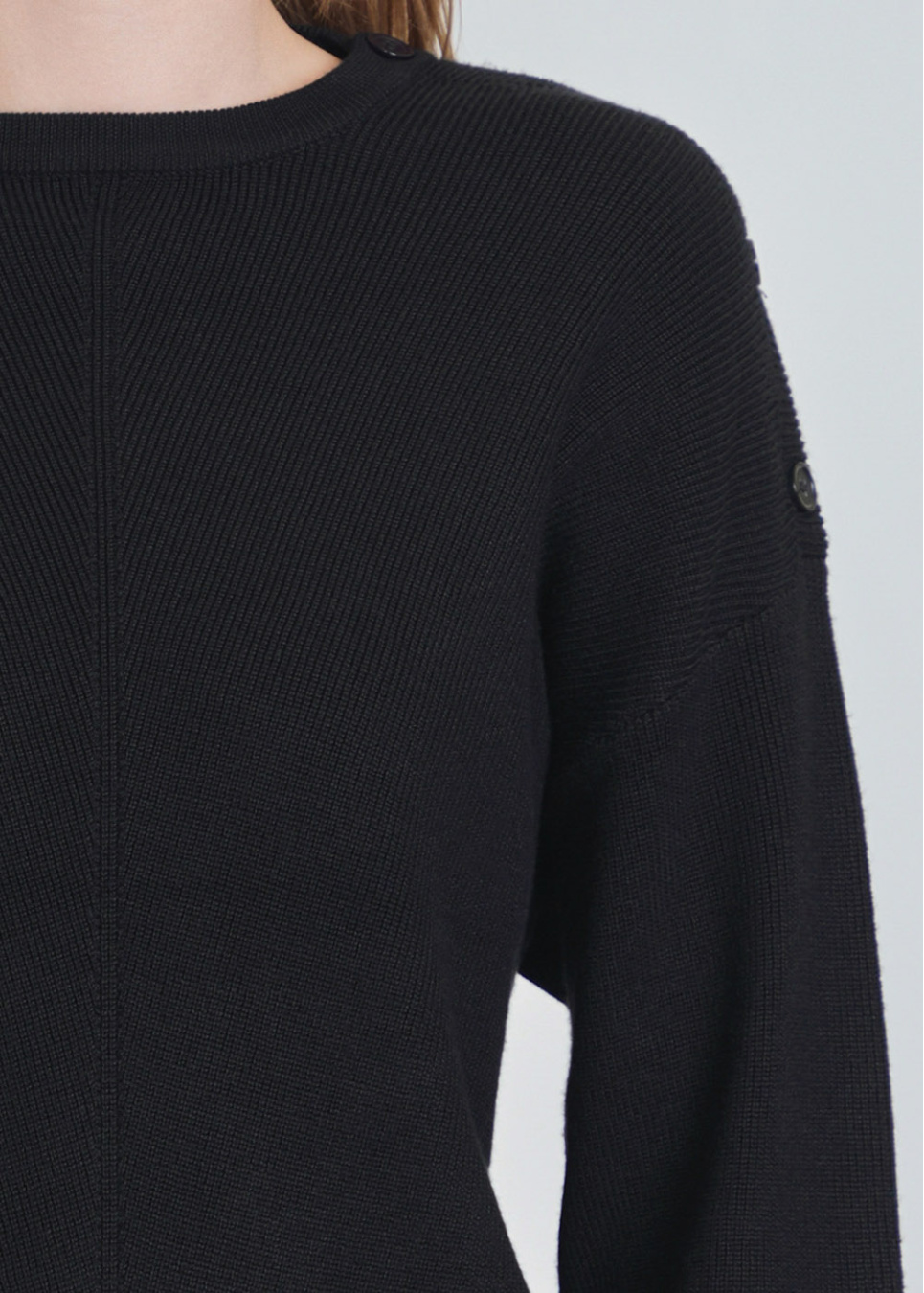 Classic Black Sweater: Knit & Buttoned Relaxed Shoulder
