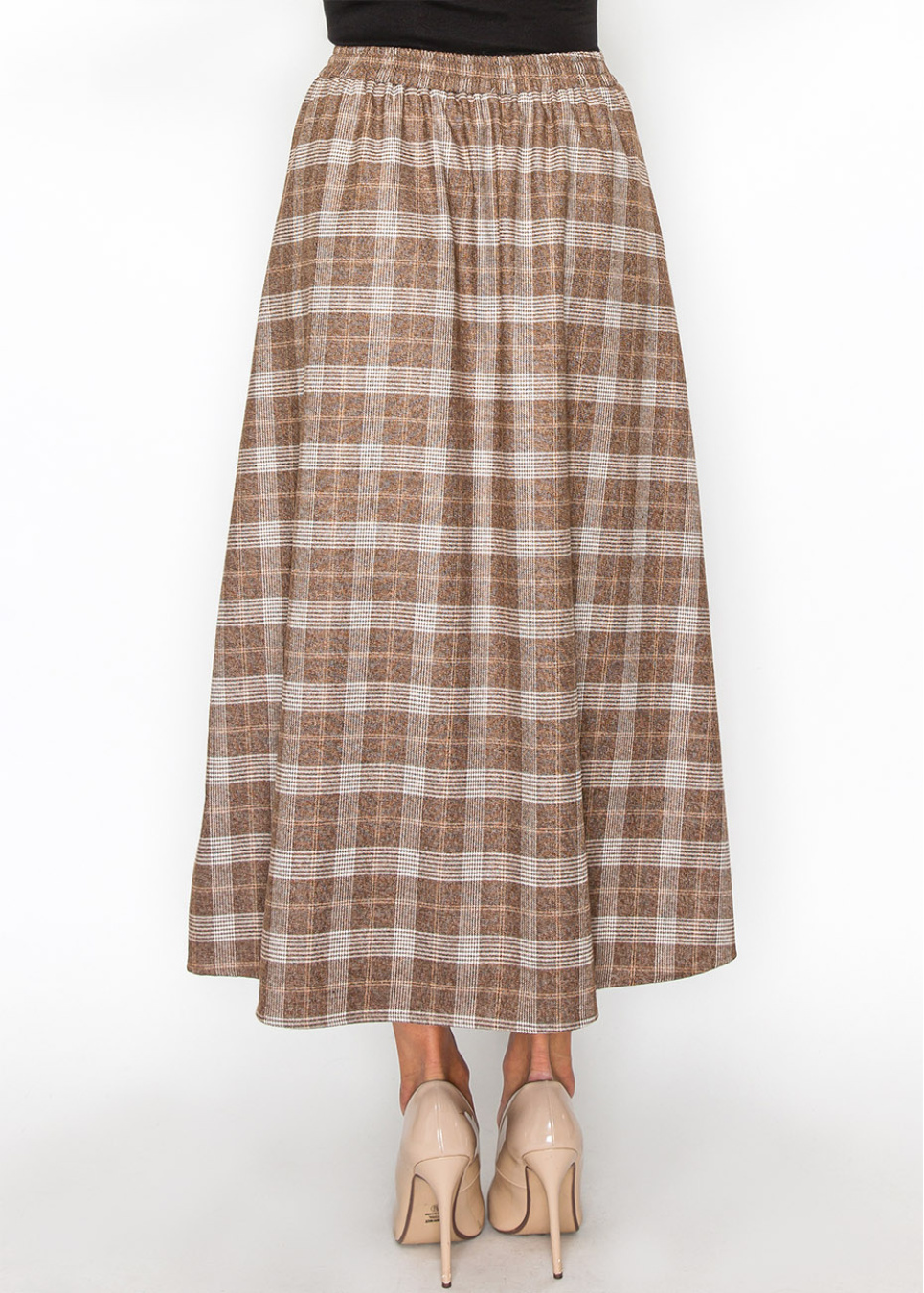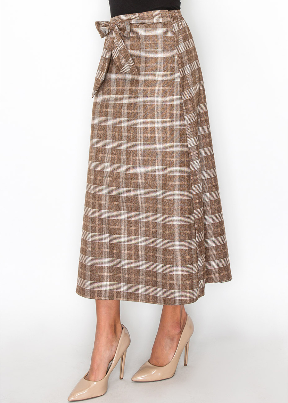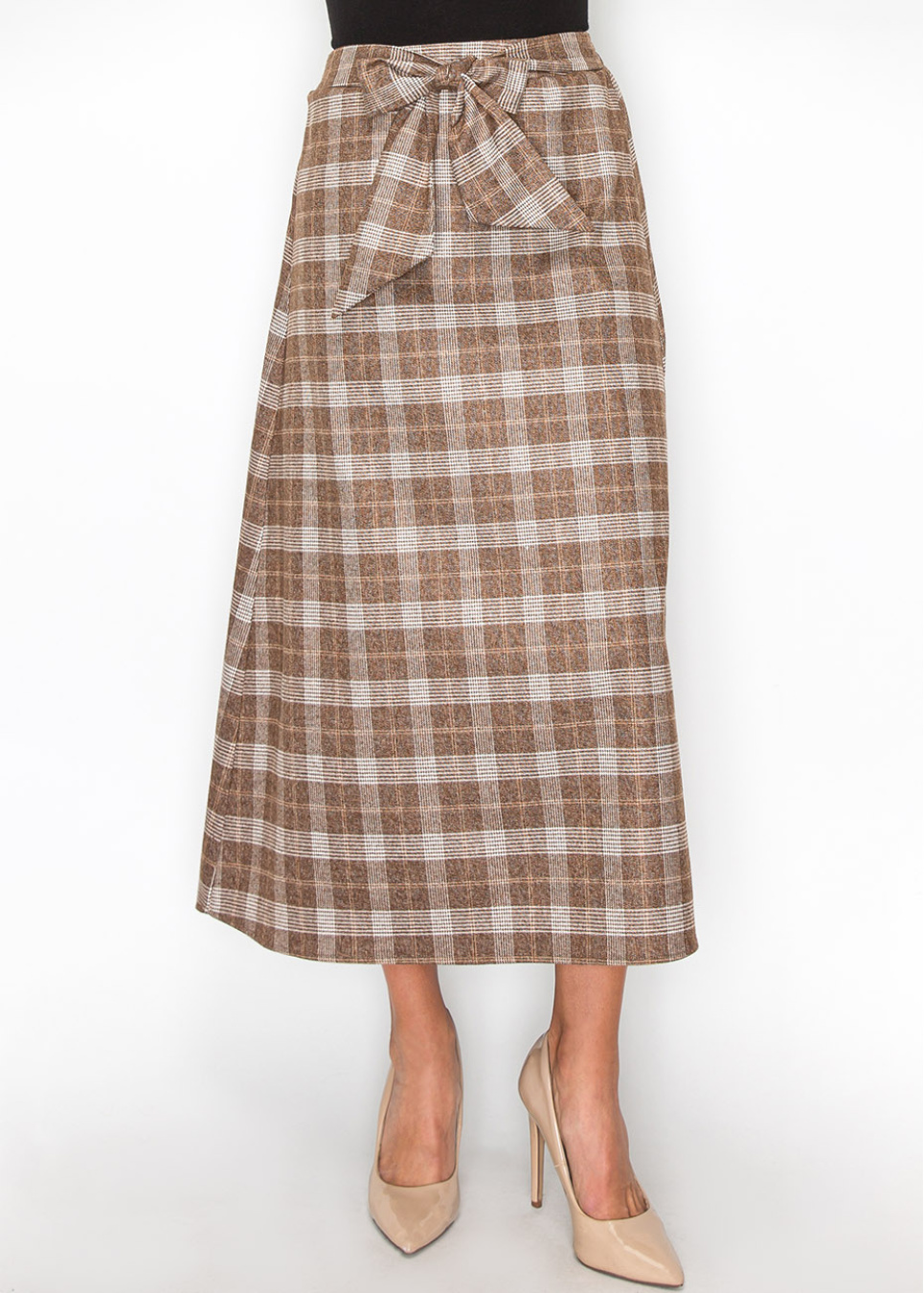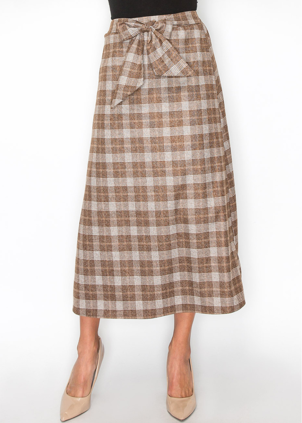 A timeless brown plaid skirt with a tie waist that adds a bit of flair to your outfit. The comfortable fit and versatile pattern make it a go-to piece for any season.