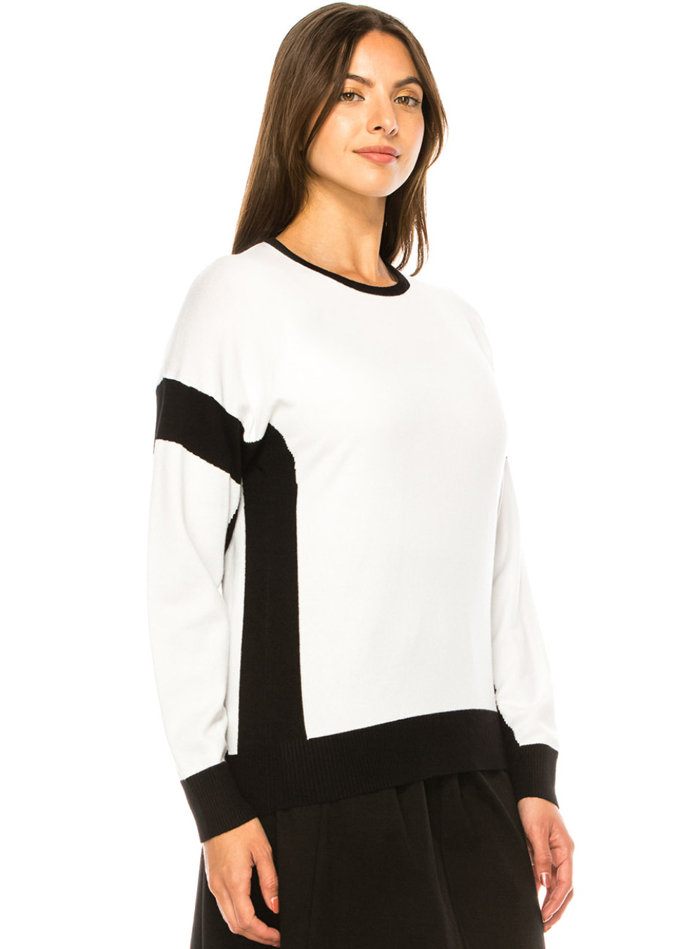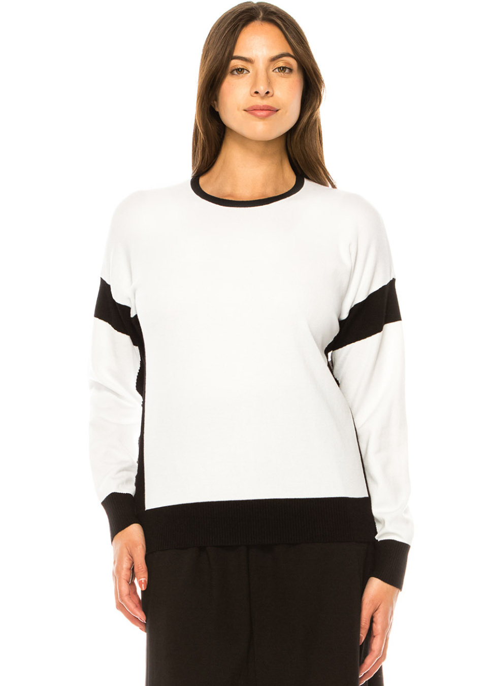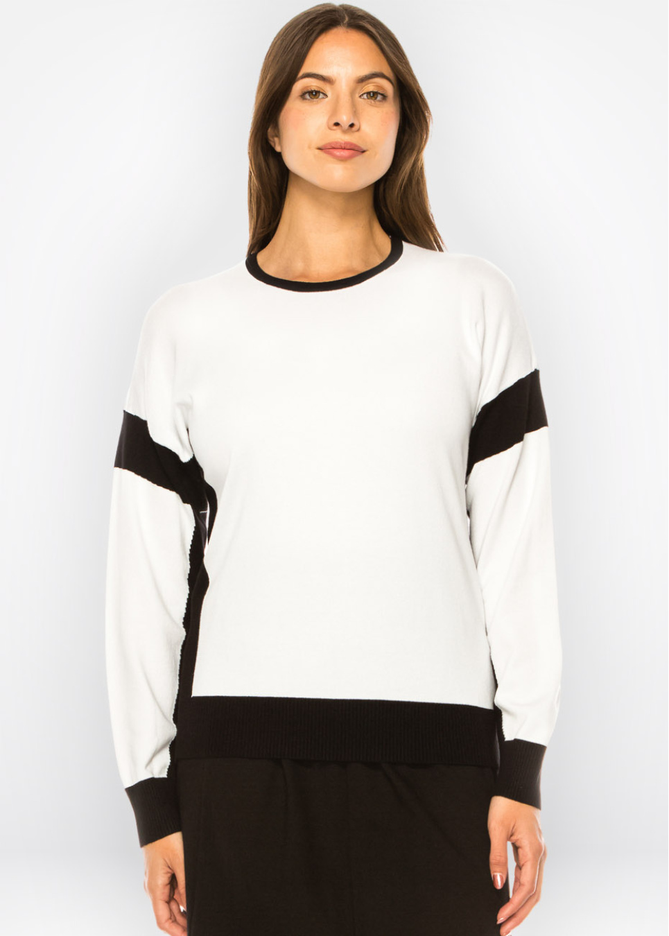 Classic Contrast Sweater – White with Black