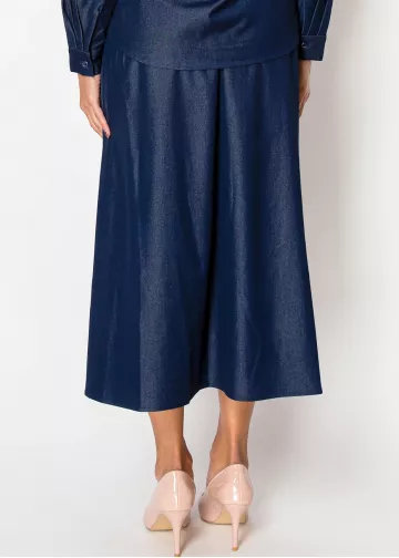 A fresh take on denim, this navy skirt balances structure and flow with its A-line shape. The dark wash makes it easy to style up or down, and the smooth fit at the waist keeps it looking clean and put-together.