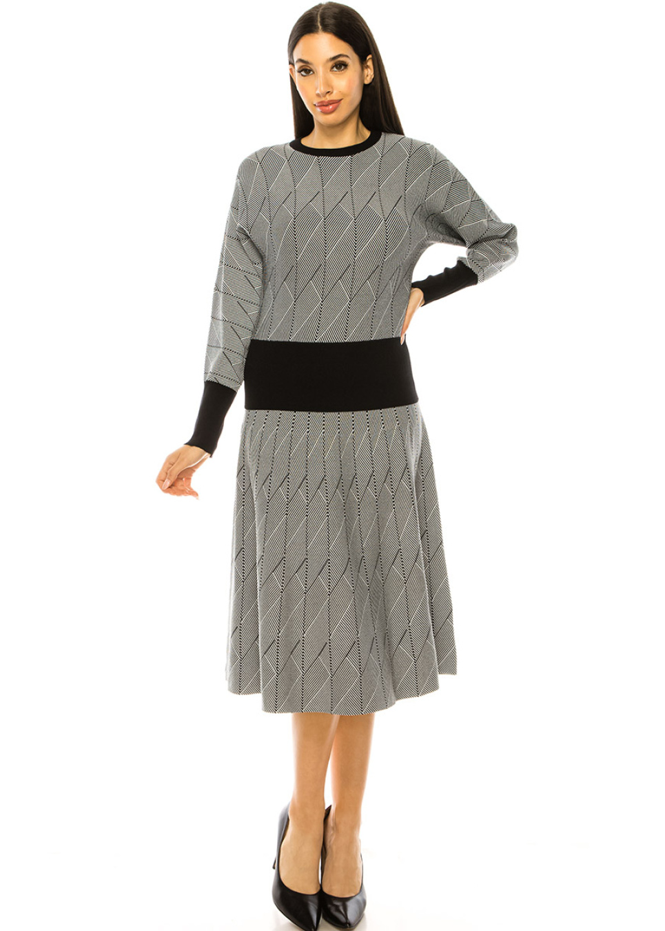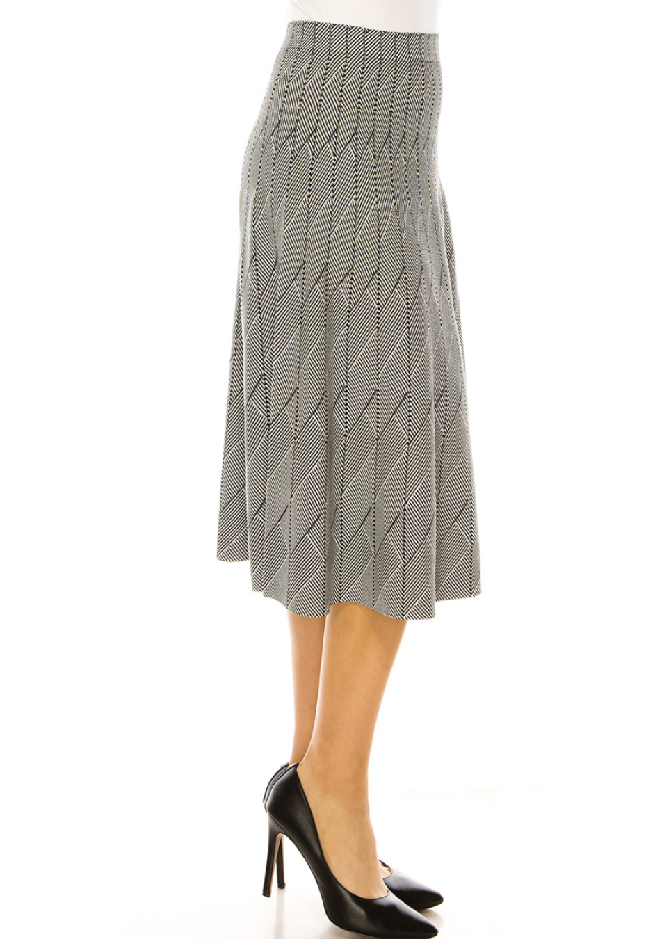 Introducing our classic midi skirt in black and white. The thin stripes add a touch of sophistication, making it perfect for both casual and formal occasions. Complete the look with our matching top, or mix and match with your favorite blouse for a timeless and versatile outfit.