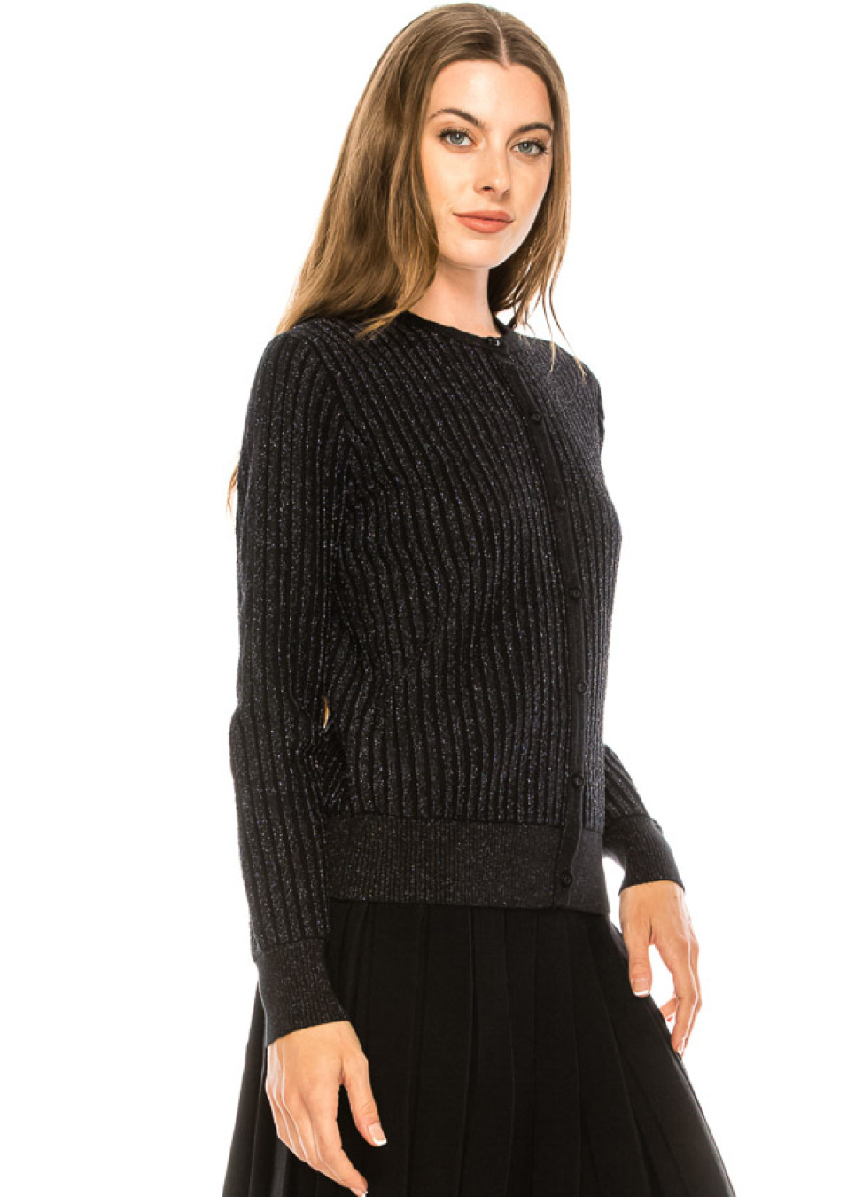 Classy button-through lurex cardigan in black