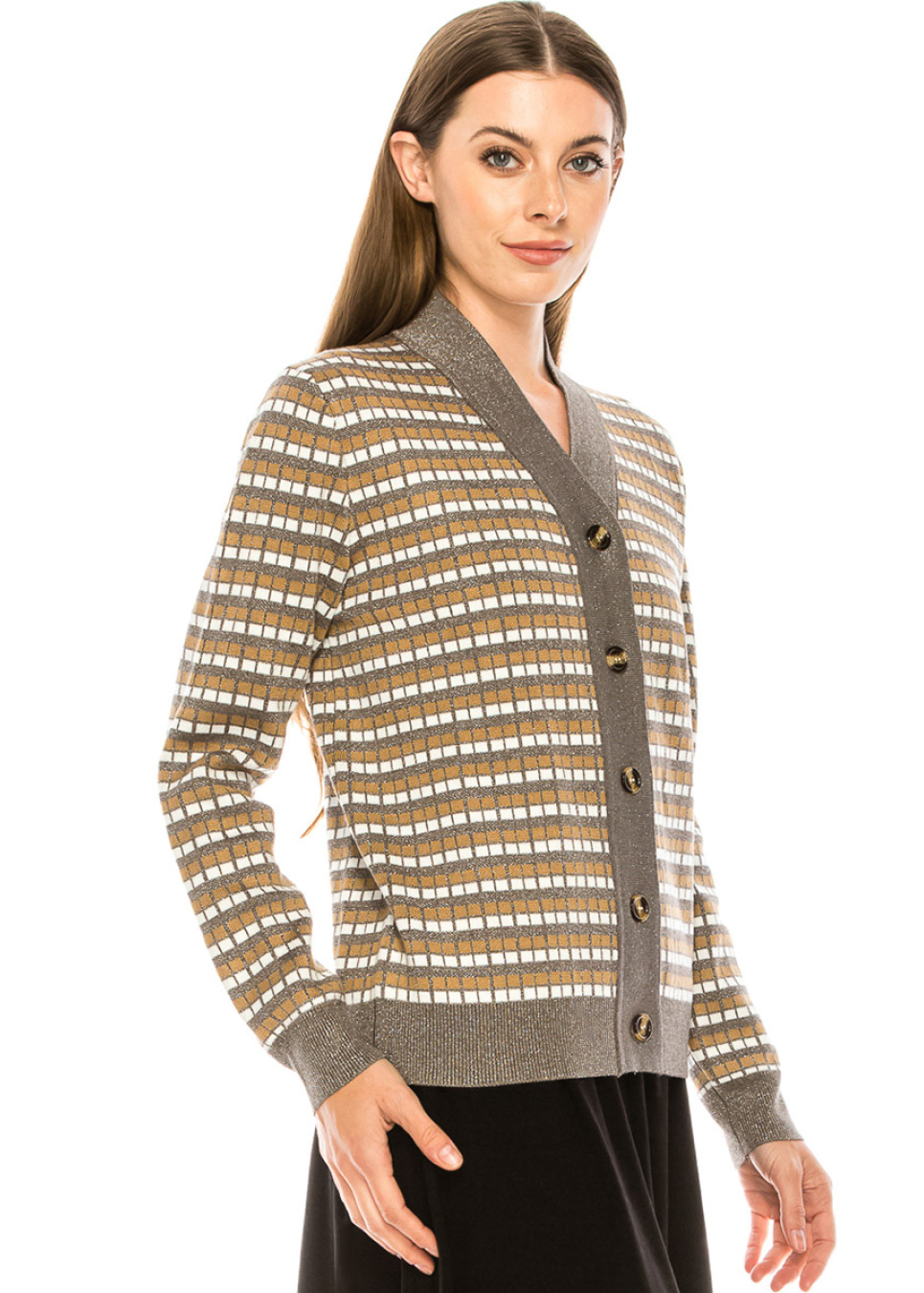 This knitted cardigan in a neutral color palette and classic cut can easily win your heart. The reasons are a comfy relaxed fit, soft, warm fabric and classic cut that flatters any figure. Plaid print adds the finishing touch to this stylish piece.