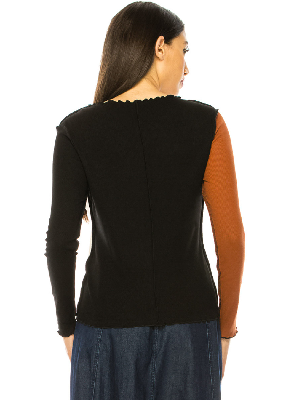 Black Long Sleeve T-Shirt With Colorful Side Stripes