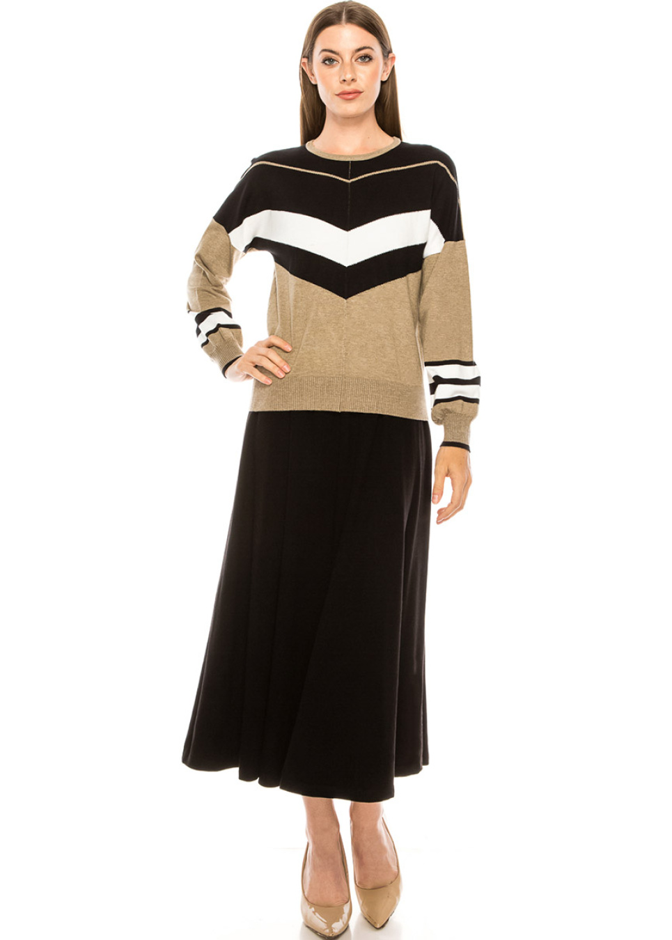 Stripe Mock Neck Sweater—Oatmeal & Burgundy