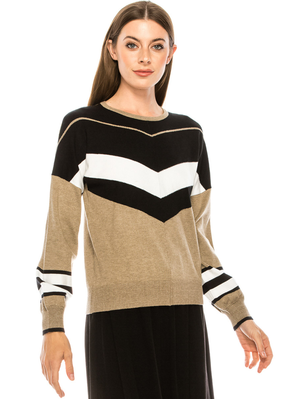 The vibrant color-block design of this cozy sweater makes it a statement piece. It is comfortable and features a simple crew neckline. The ribbed hemline and cuffs will keep you warm and cozy on cold days.