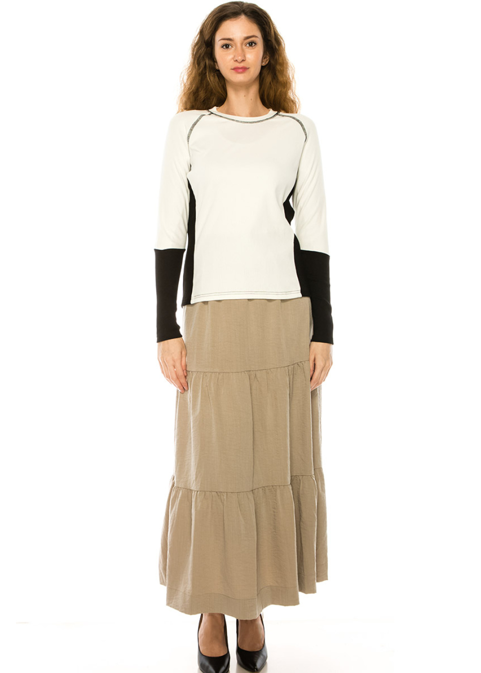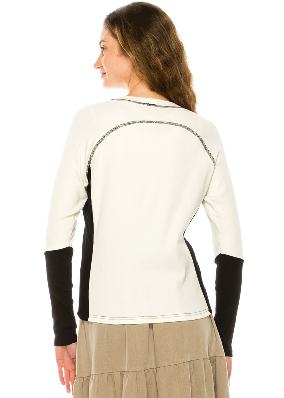 Color Contrast Long Sleeve T-Shirt In Black And Camel