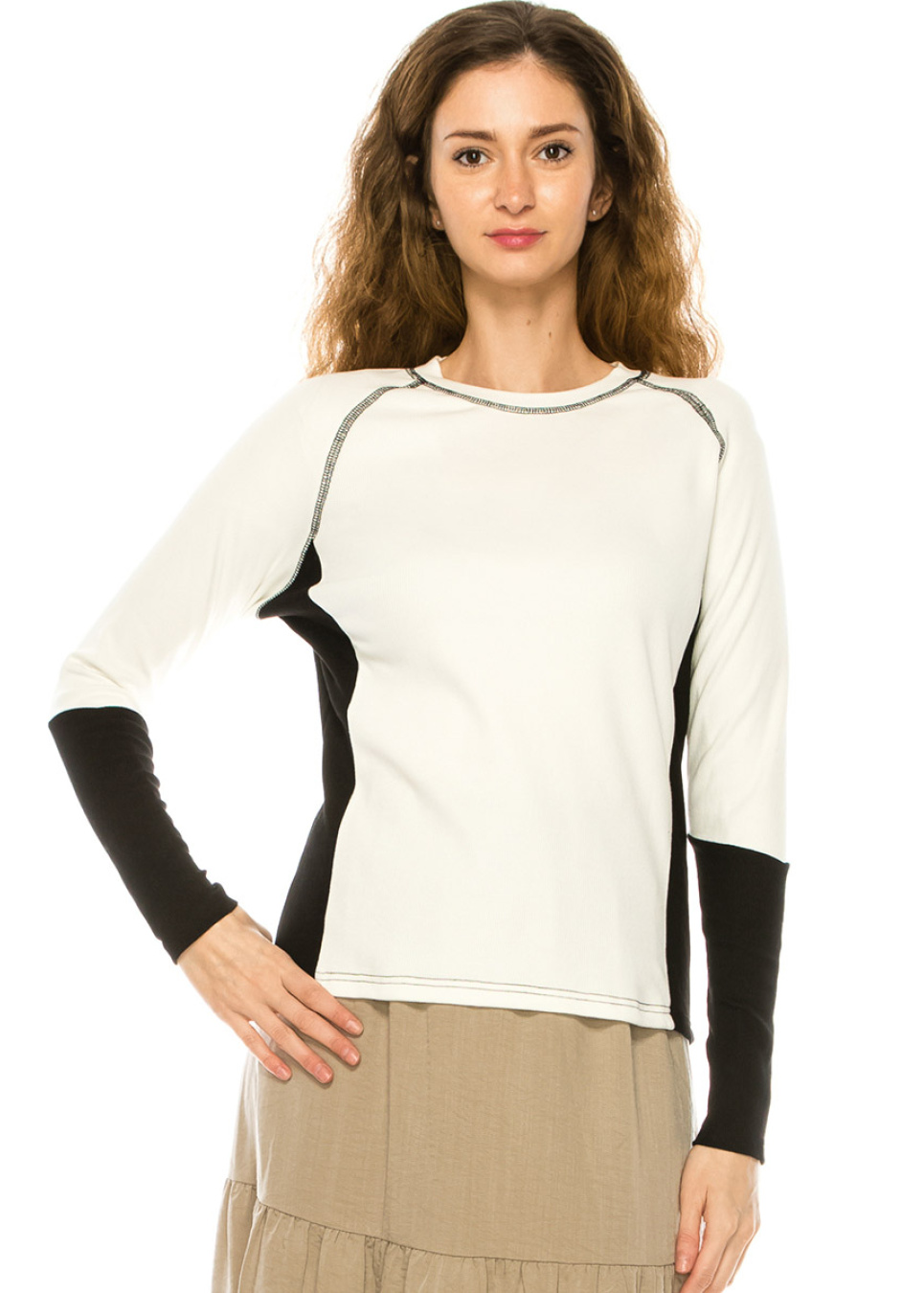 Achieve a chic and sophisticated look with this Long Sleeve T-Shirt. The white and black color block design and crew neck make it a timeless piece that can be easily dressed up or down. The lightweight and soft fabric ensures that you'll stay comfortable throughout the day, while the classic style is perfect for any occasion.