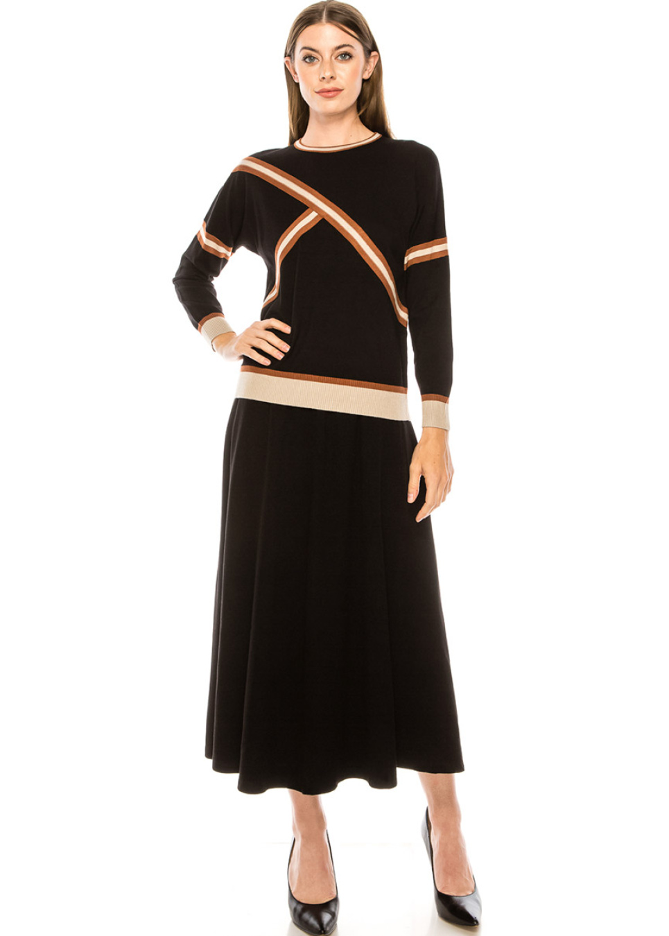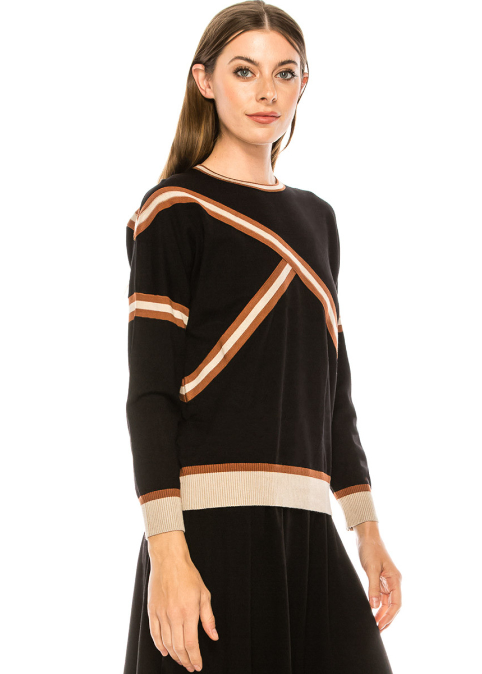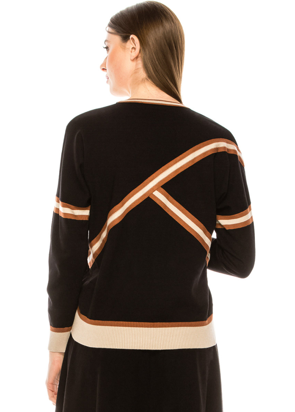 Camel & Black Striped Ribbed Sweater