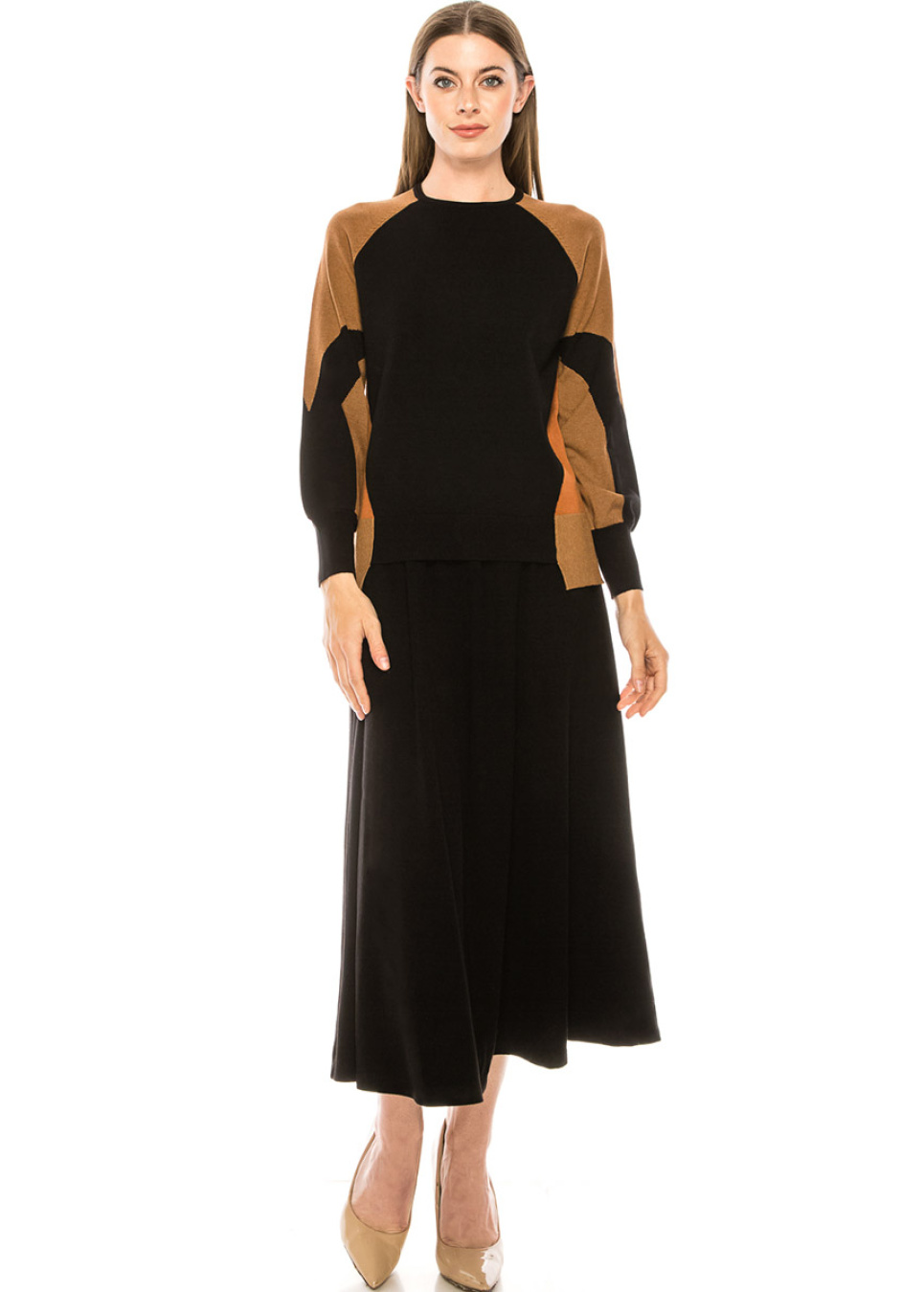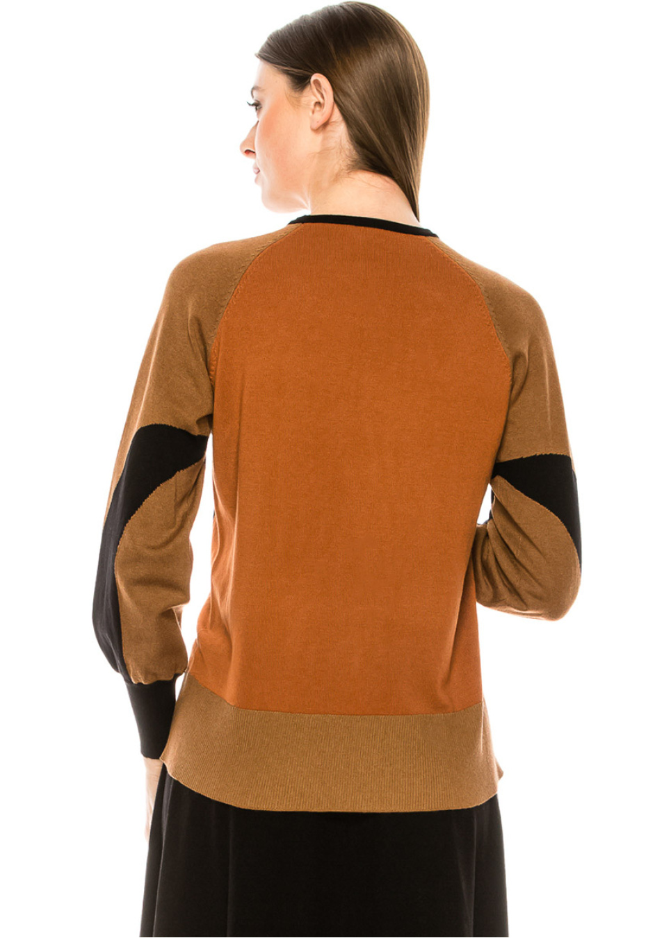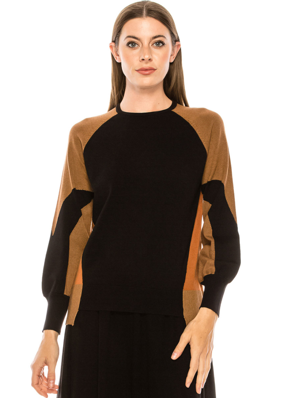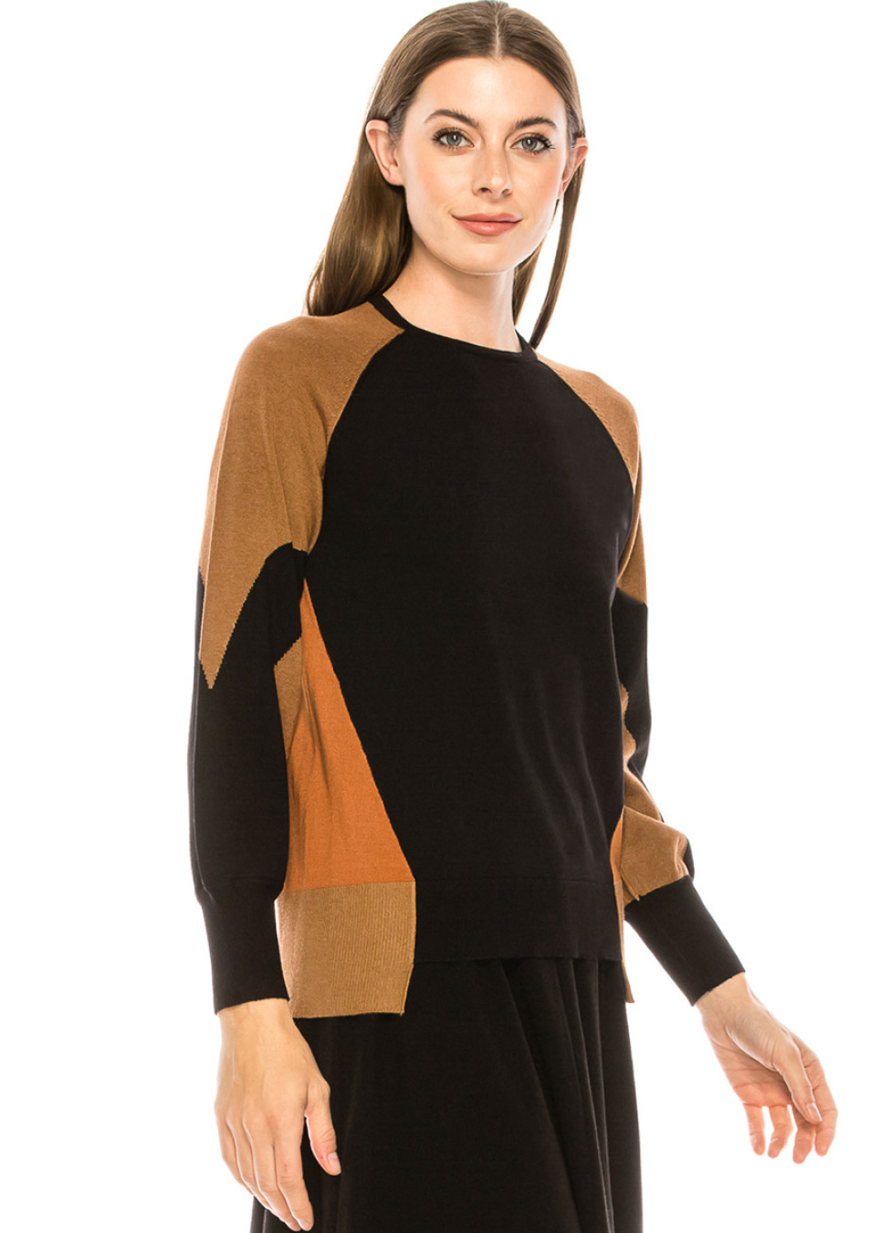 Mock Neck Colorblock Sweater – Blue & Mocha