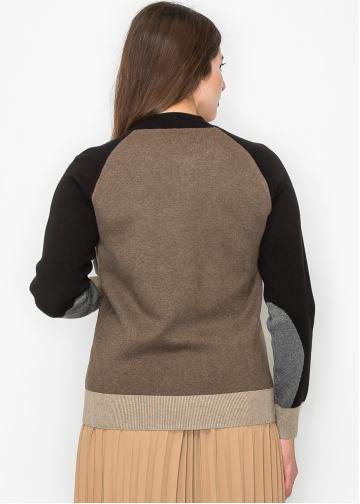 Color-Block Taupe Knit Jacket