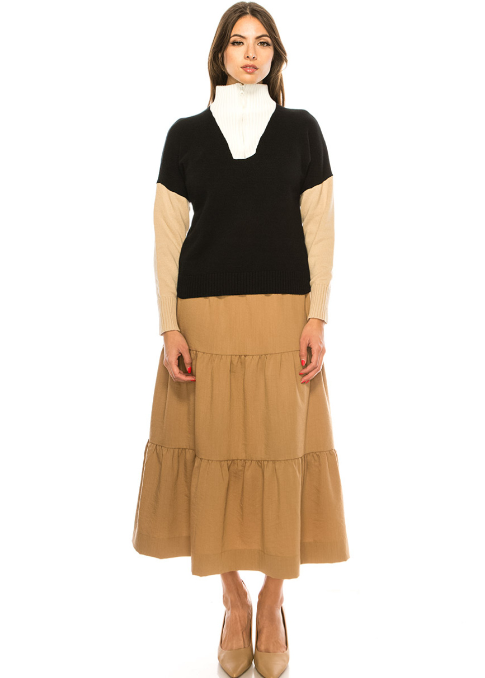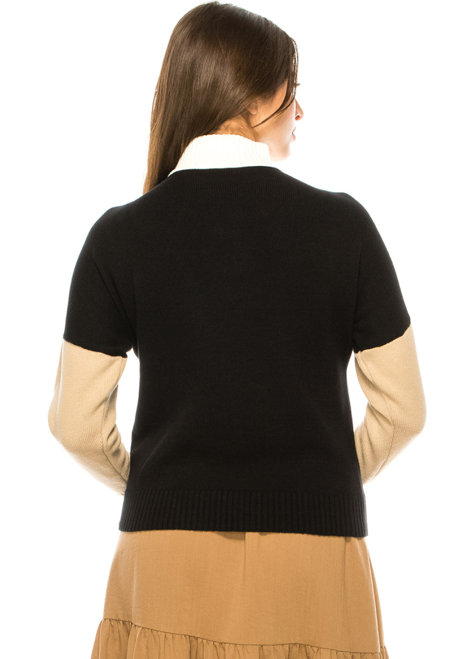 Color Block Zip Sweater in Black