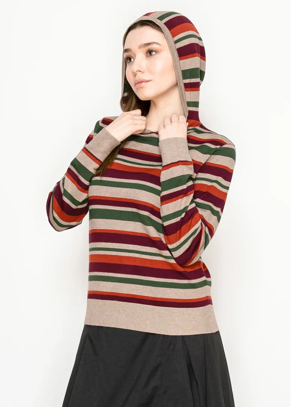 Think cozy weekends and coffee runs—this striped hoodie has all the right fall colors in one easy layer. Soft knit, light feel, and a relaxed fit you’ll love.