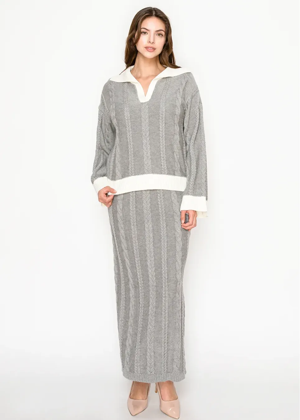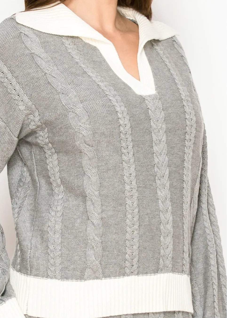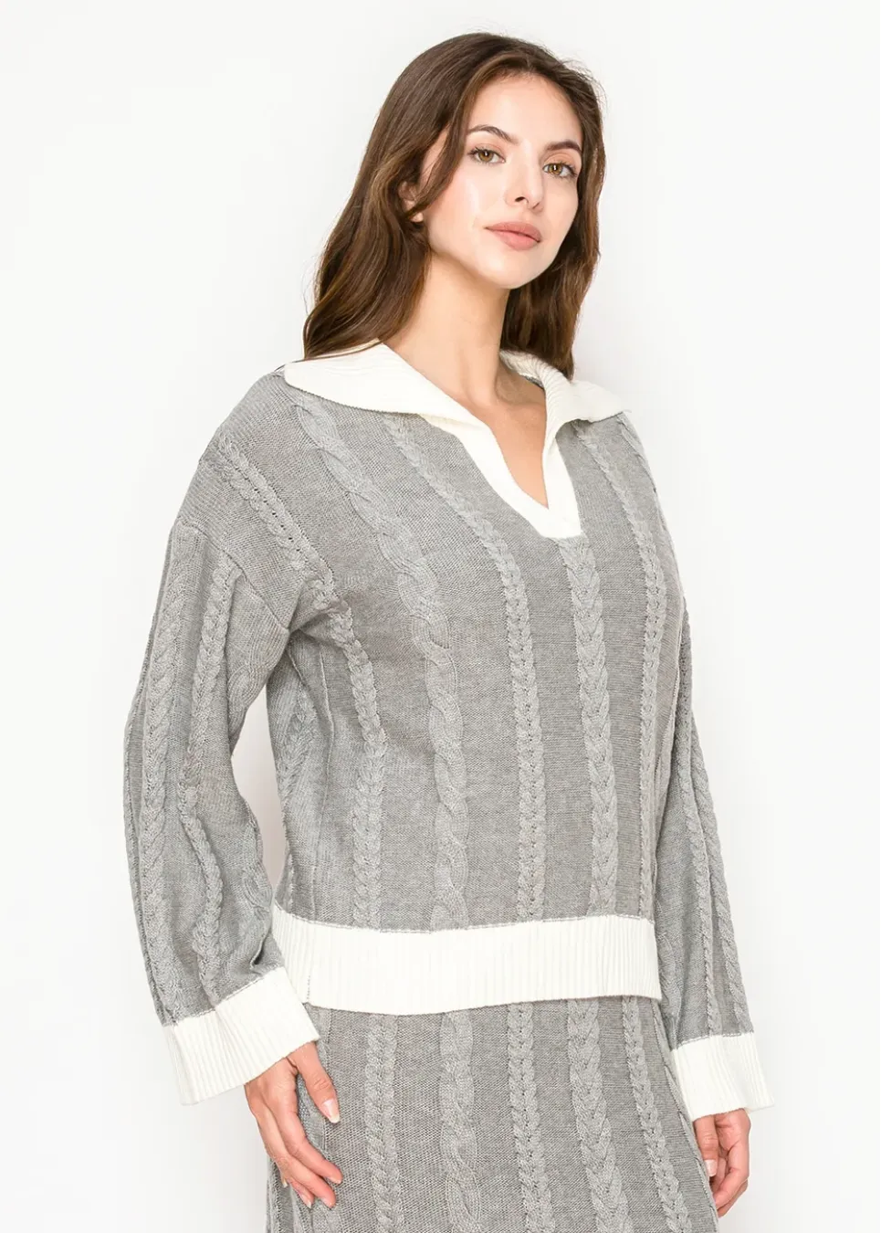 It’s like your favorite cable knit — but smarter. Featuring a soft V-neck, a crisp ivory collar, and cozy weight, this sweater balances polish and ease.