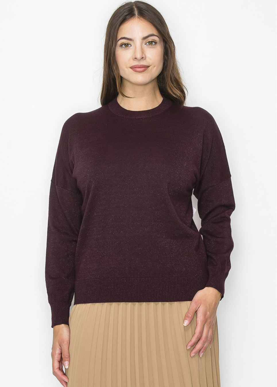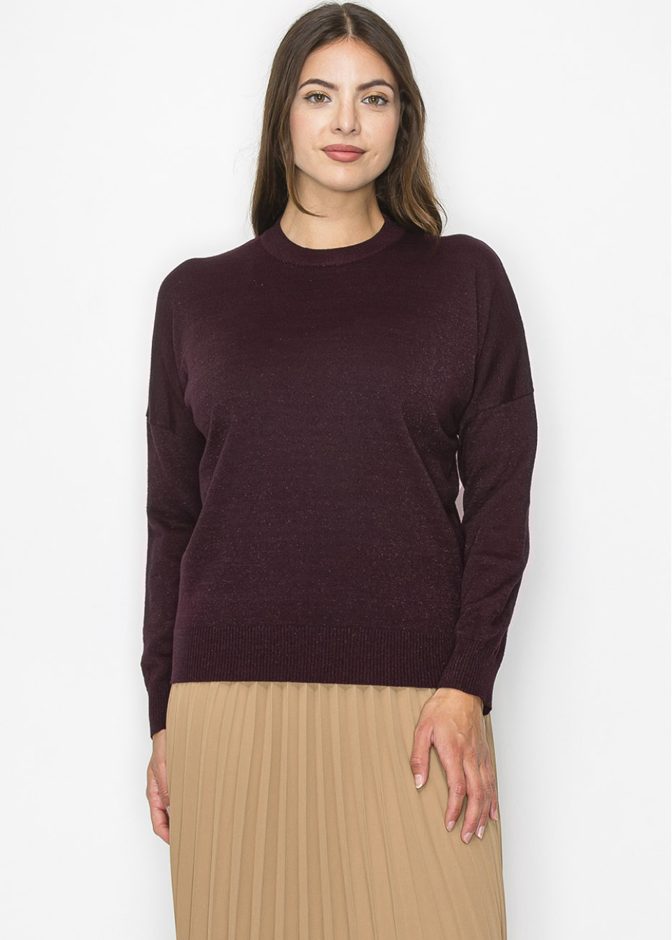 Wrap yourself in cozy warmth with this rich burgundy pullover. Its soft knit fabric and relaxed fit make it a go-to for casual days or layering over a modest outfit. The deep burgundy tone brings a timeless, cozy feel to your wardrobe.
