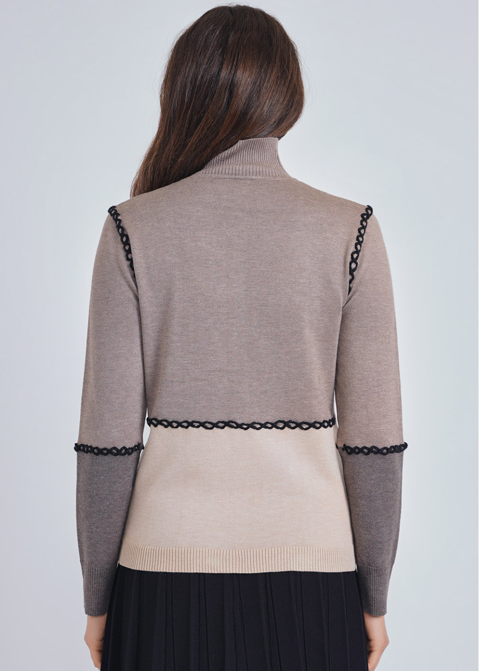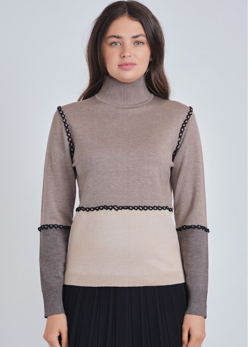 Crafted Elegance: Taupe Color Block Sweater