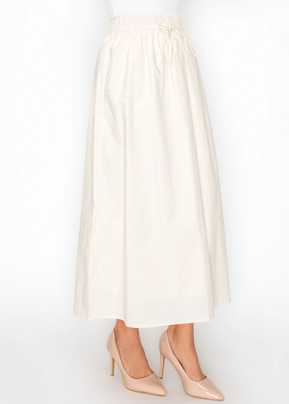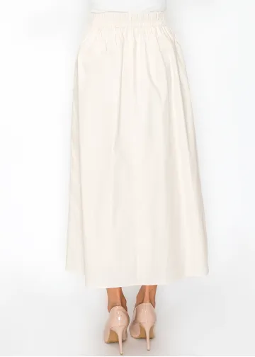 Cream Cotton Skirt with Drawstring Waist