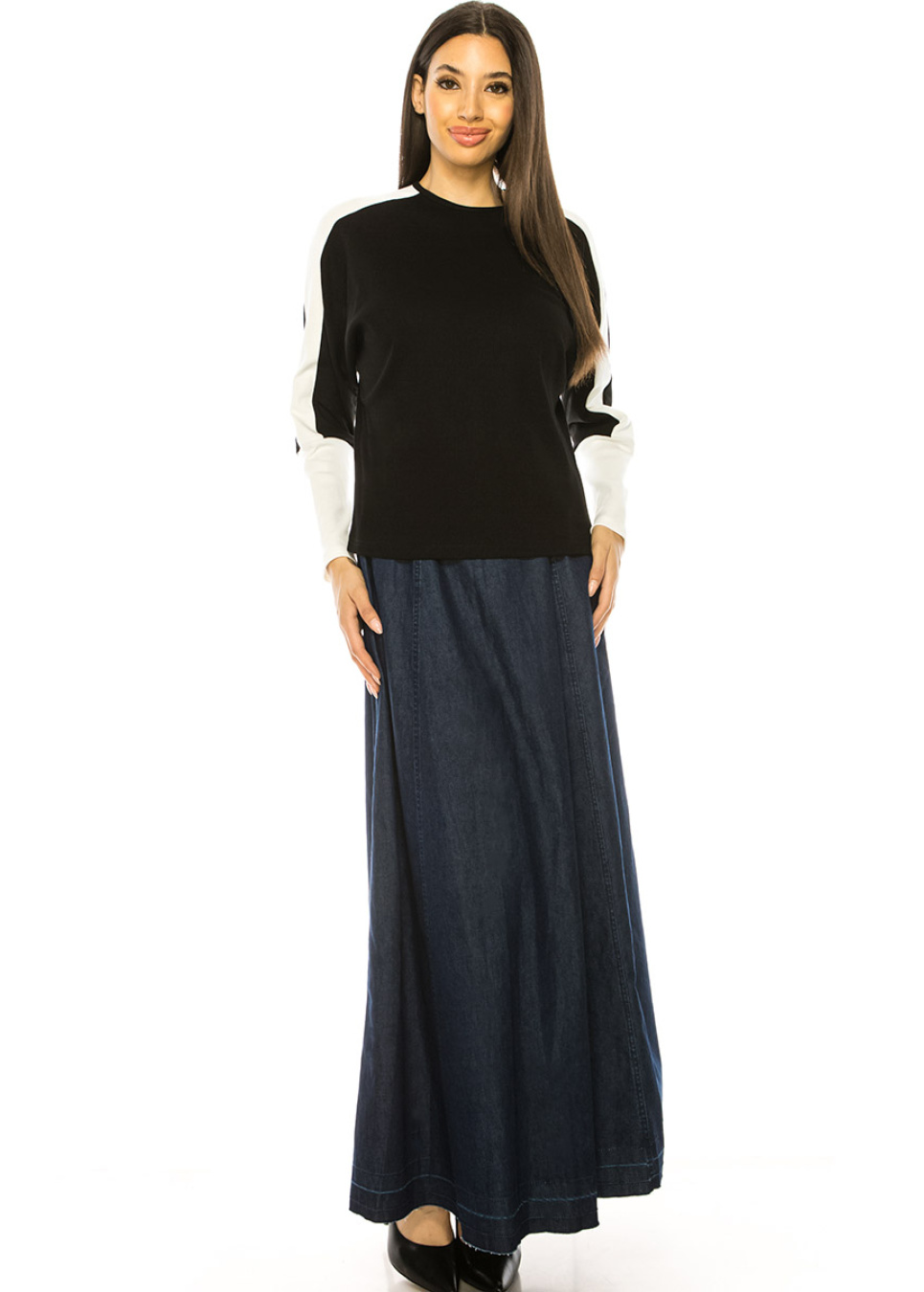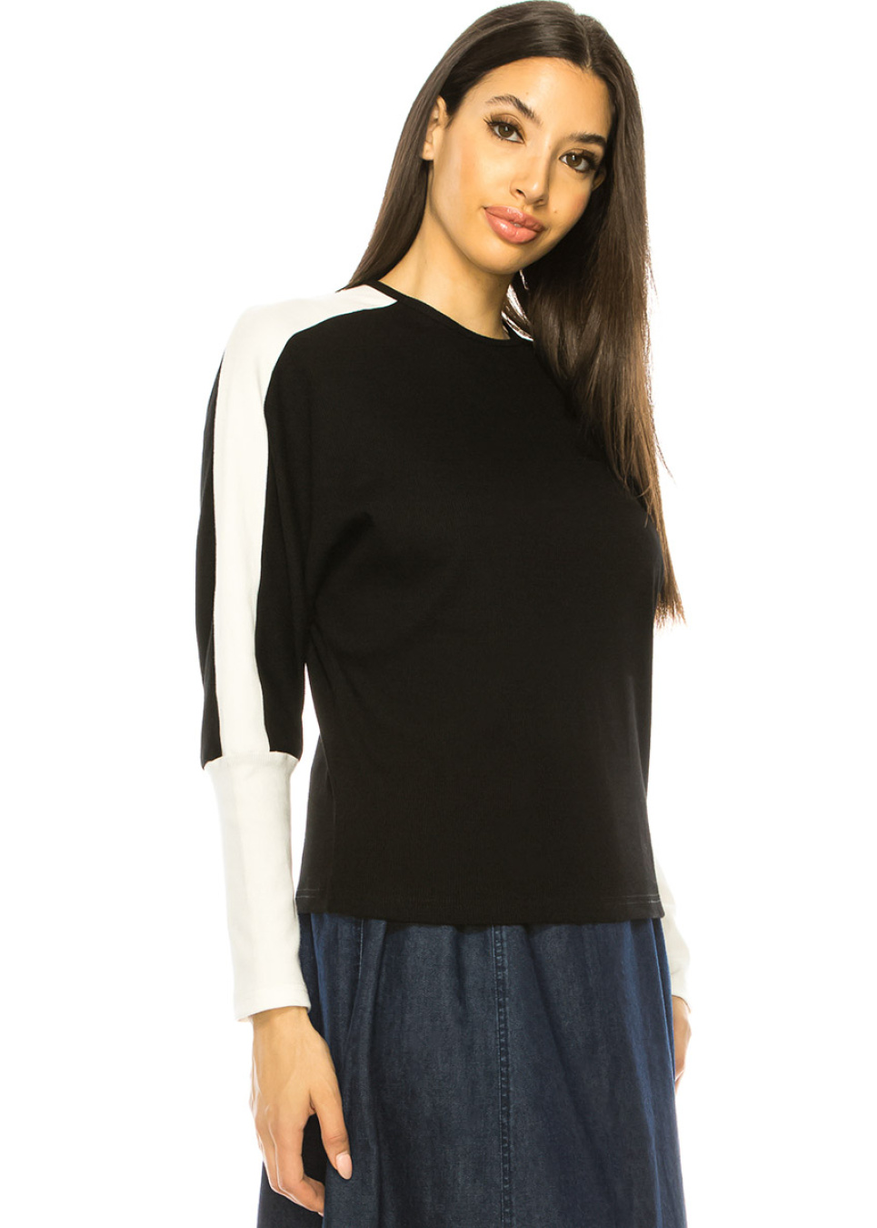 Crew Neck Black & White Long Sleeve T-Shirt