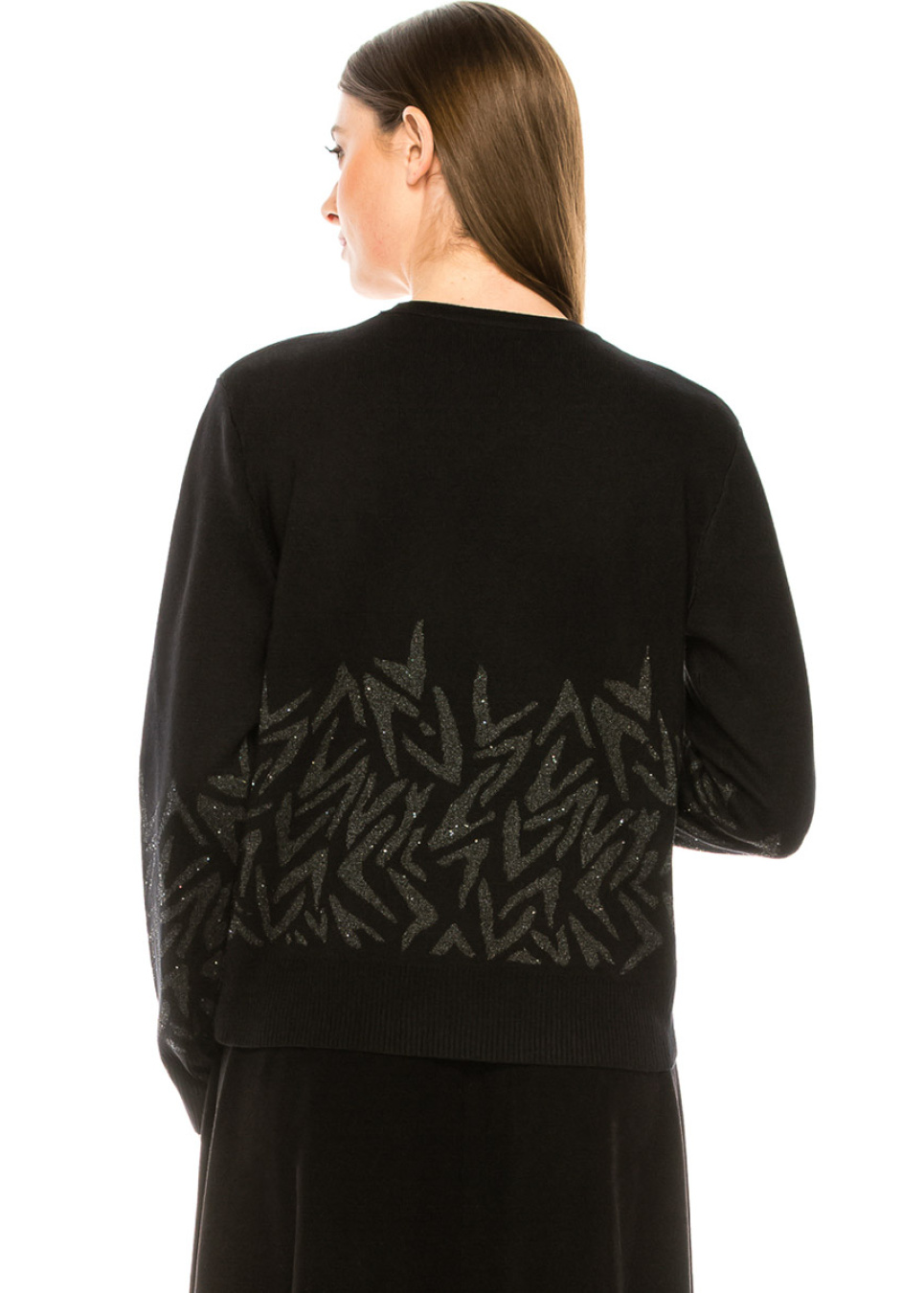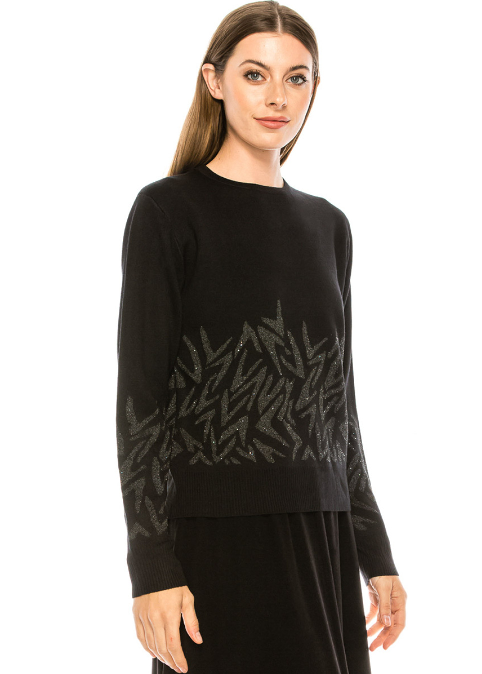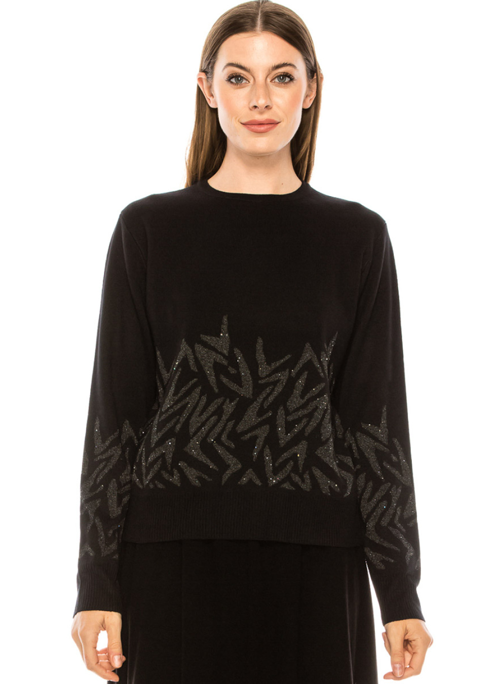 This sweater has a shiny print to make your everyday dressier and a relaxed cut for added coziness. Basic black background and classic cut are perfect for mixing and matching it with different clothes. Soft, high-quality fabric and ribbed edges take care of your warmth.