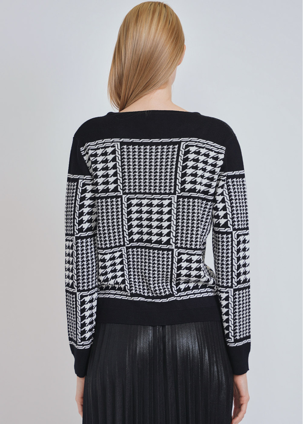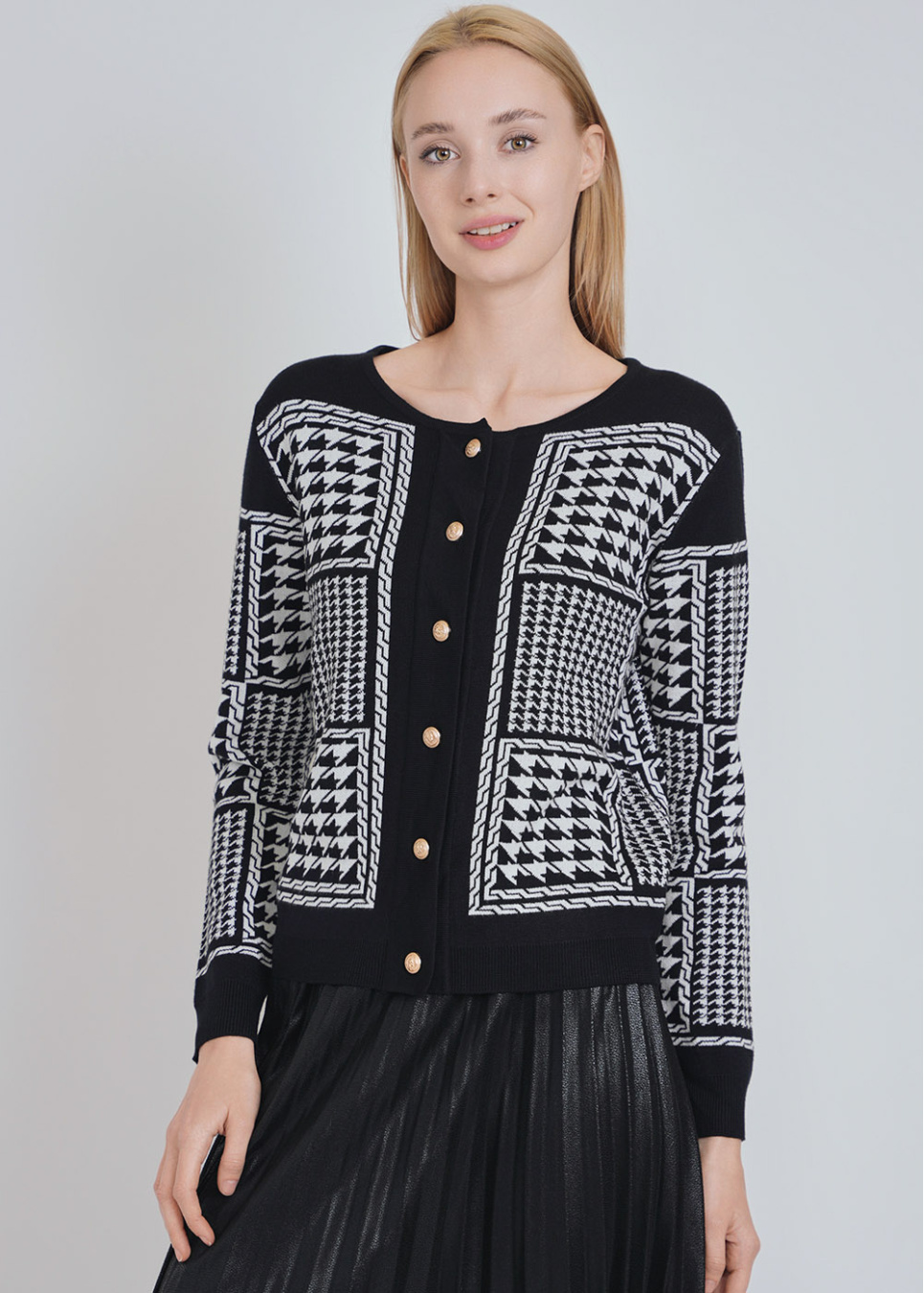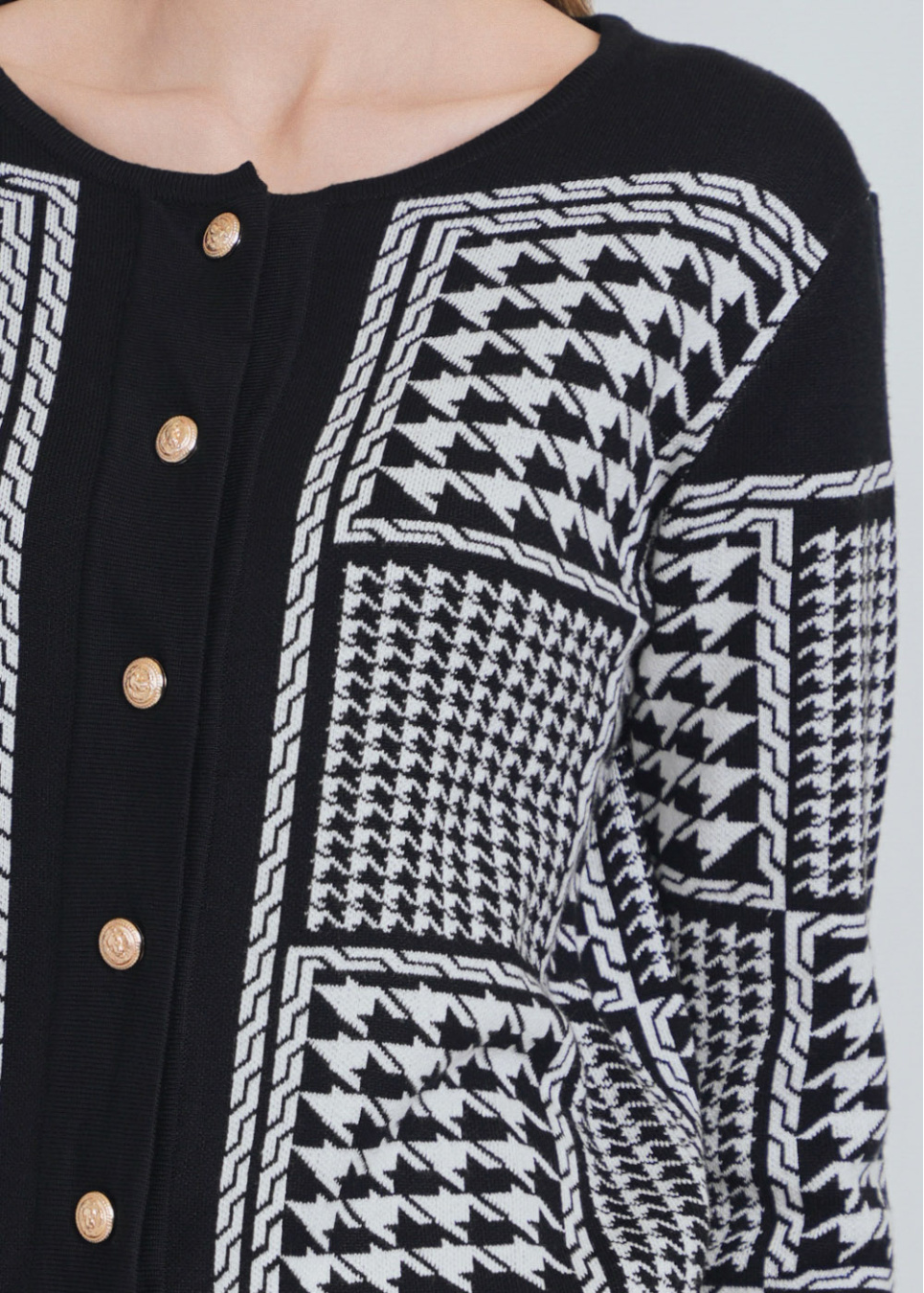 Crew Neck Cardigan in Black with White Timeless Patterns