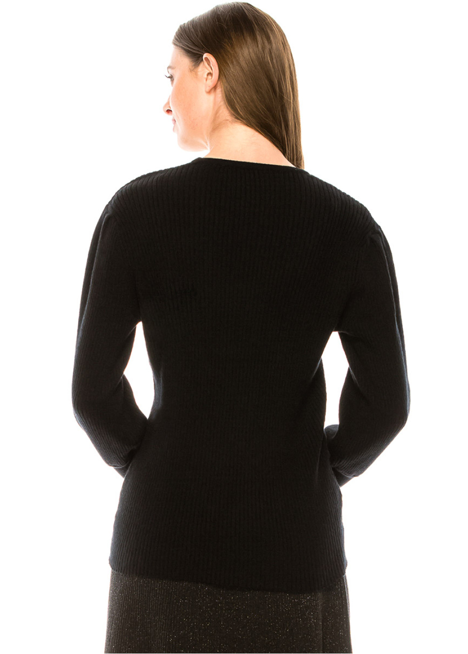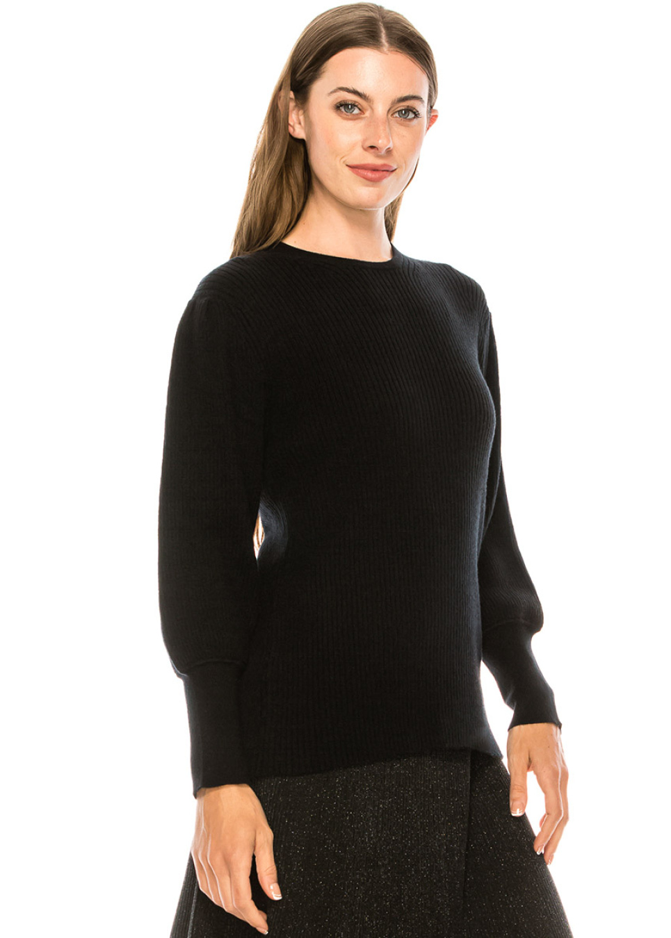 Crew neck leg-of-mutton sleeve sweater in black