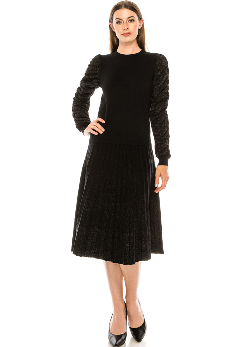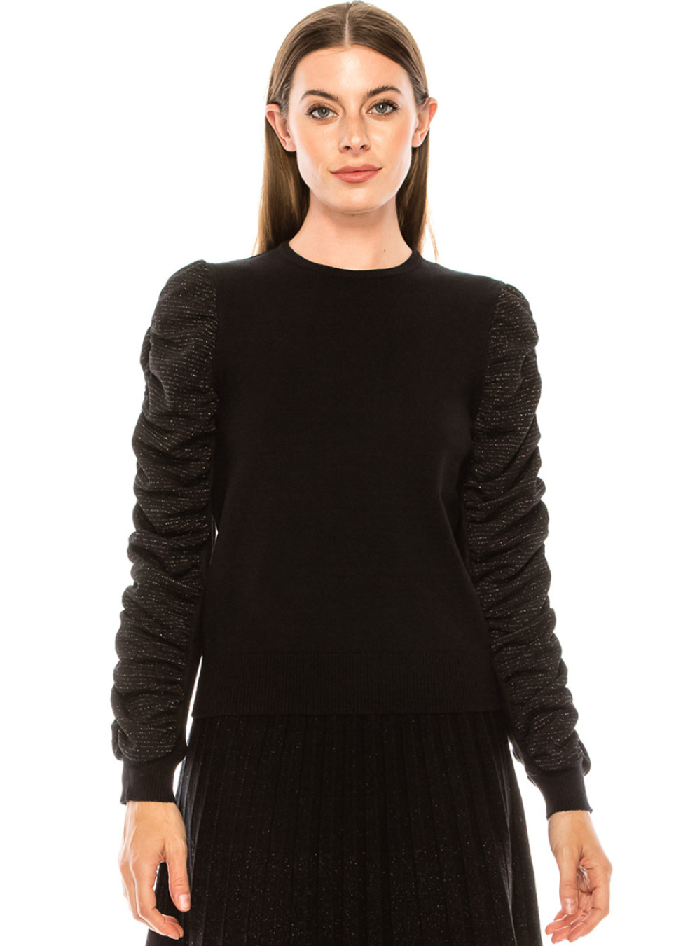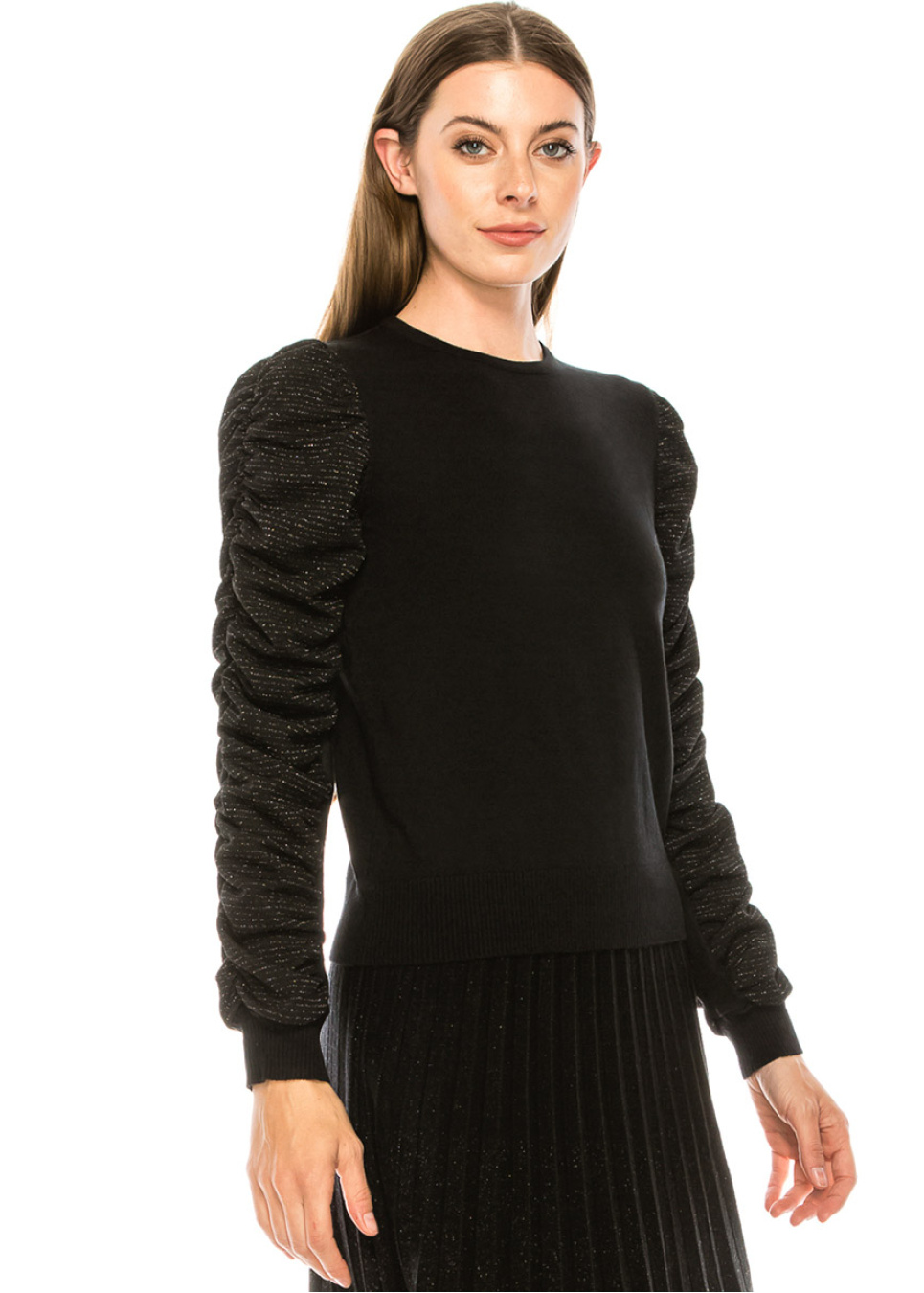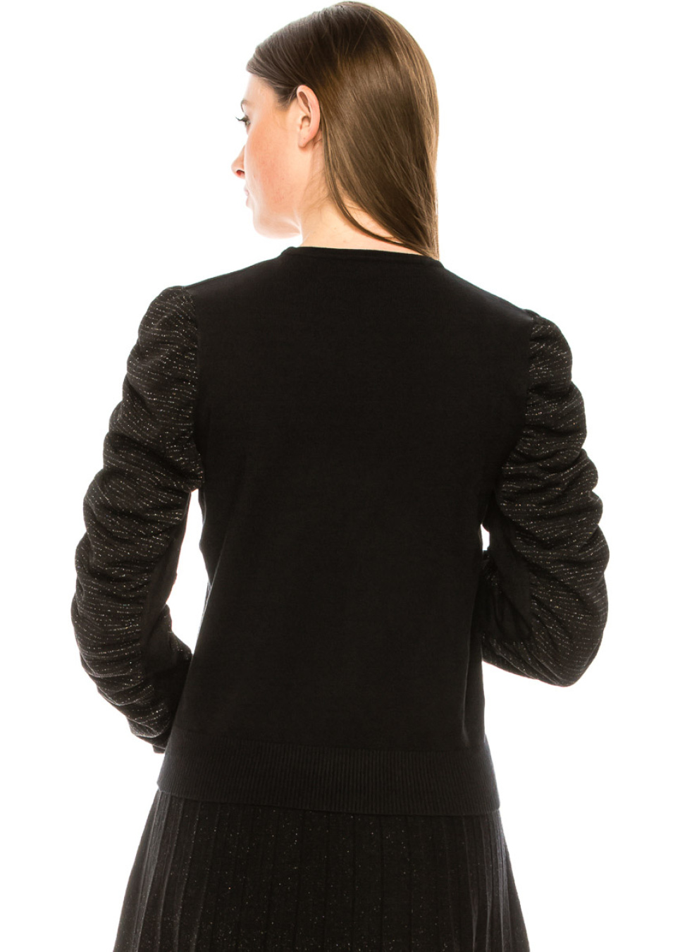 This high-quality sweater is really comfortable and has delicately draped lurex sleeves. It has a standard crew neck and a typical fit. The ribbed edges will help keep you warm and cozy.
