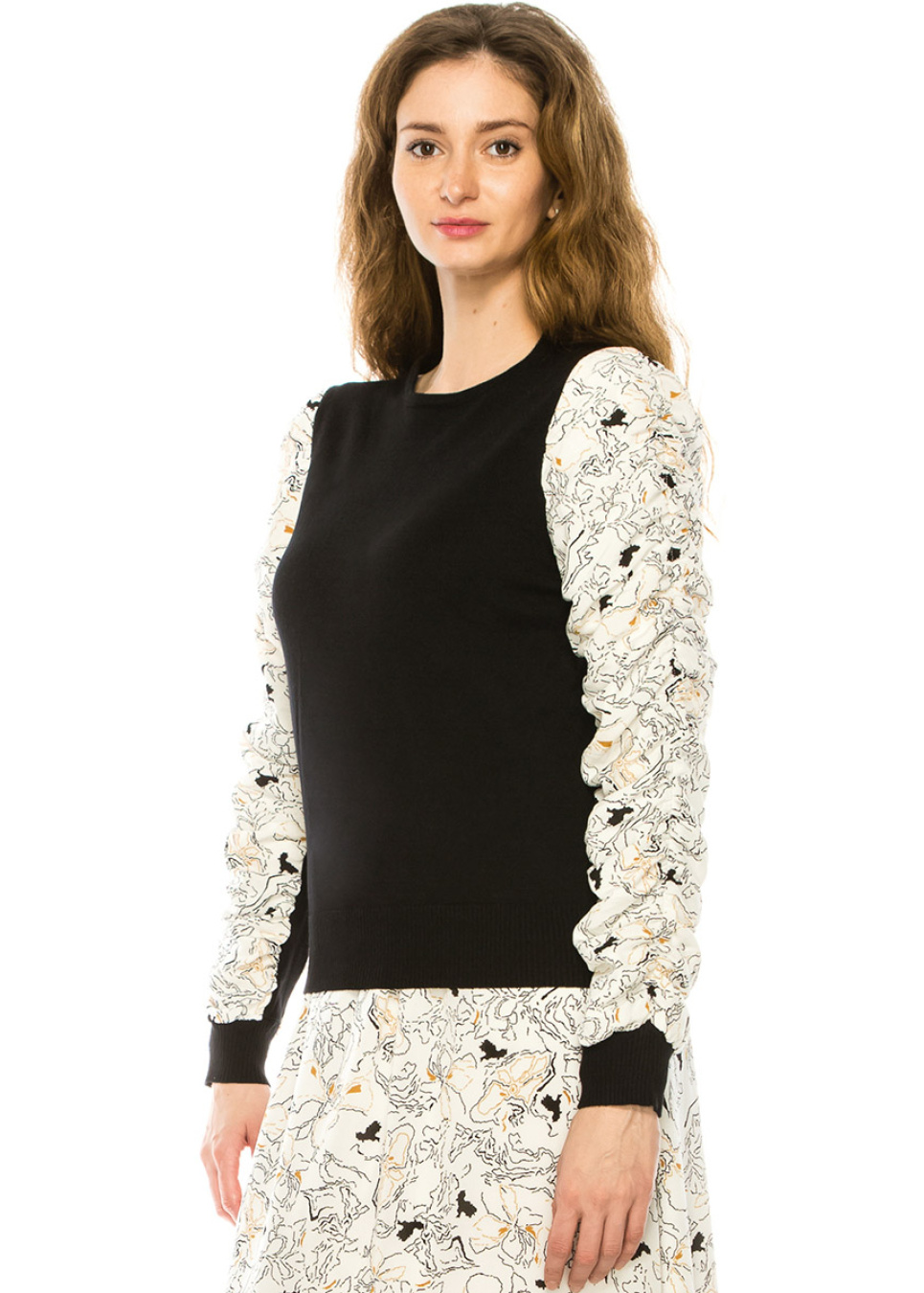 Crew Neck Sweater With White Draped Sleeves