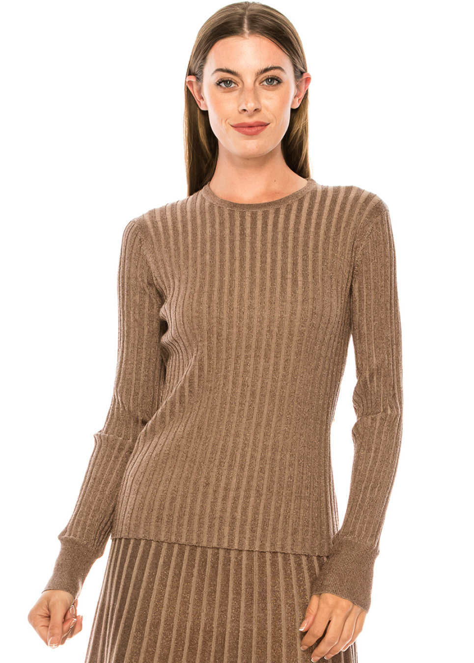 Crew neck taupe sweater with lurex threads