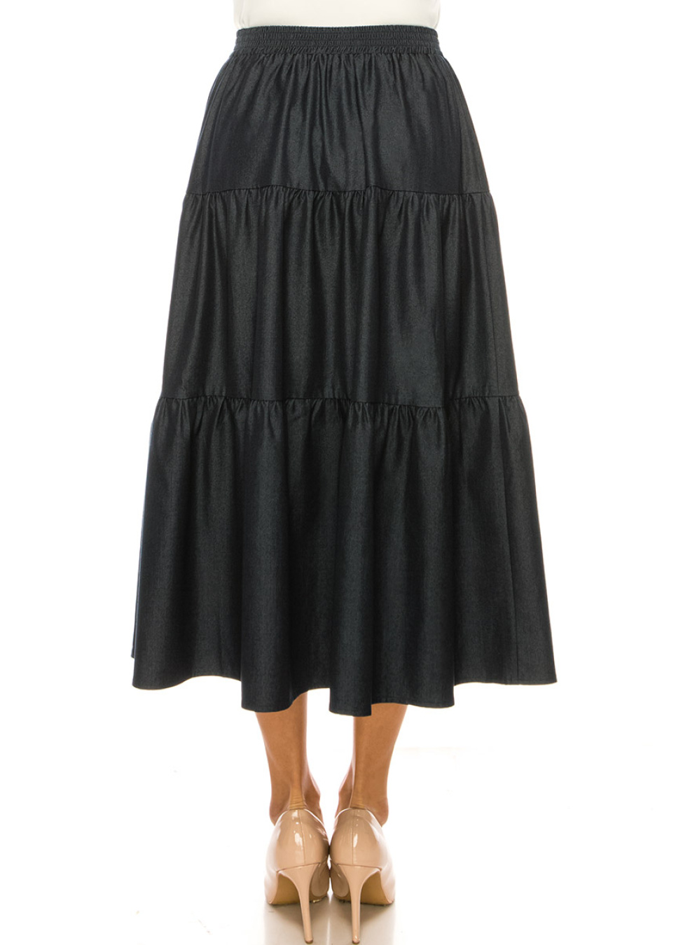 Dark Blue Denim Midi Tiered Skirt