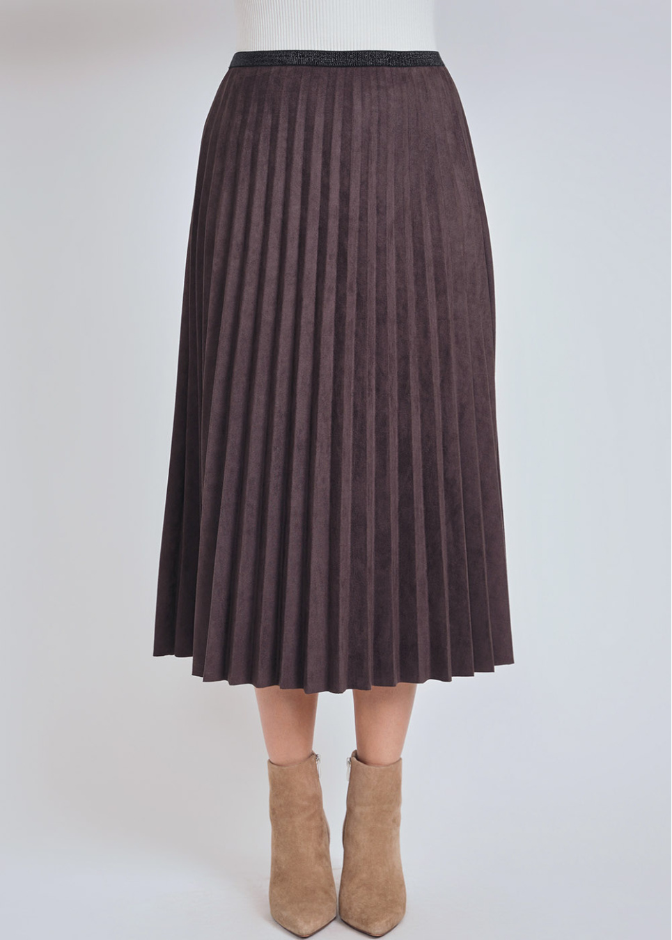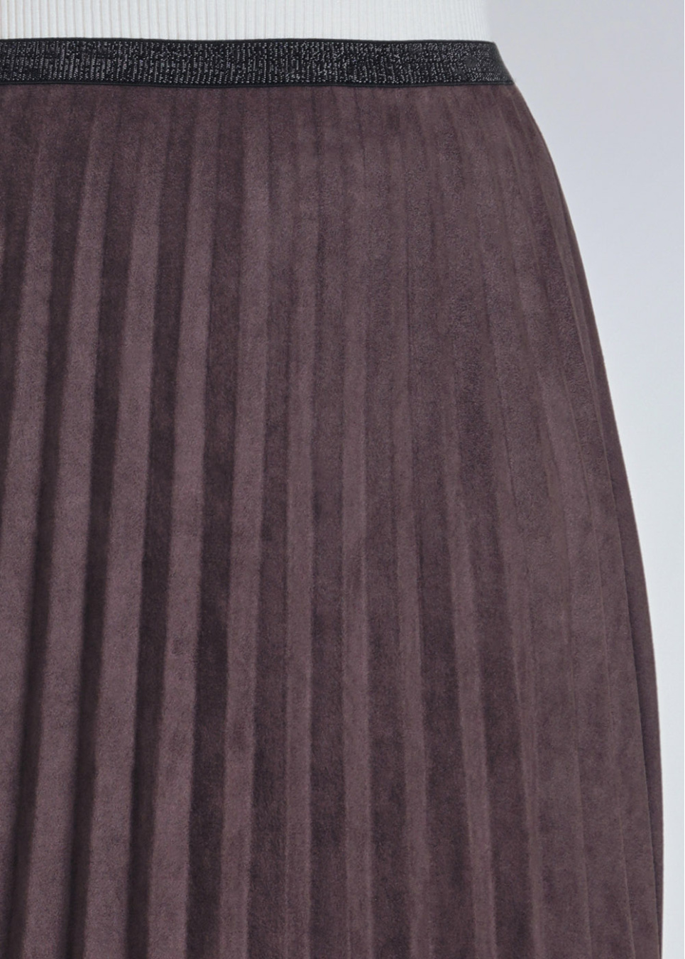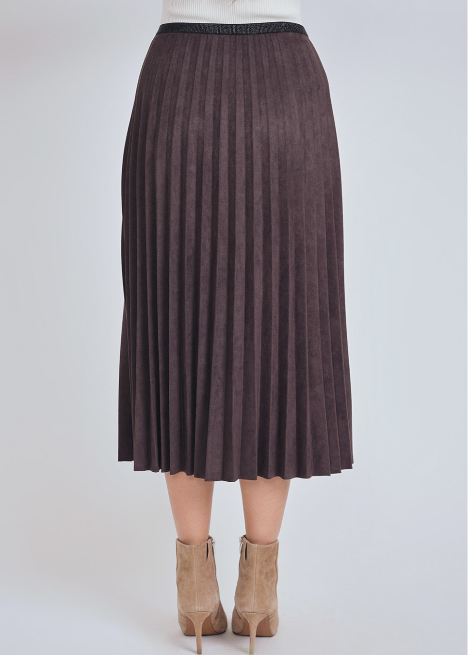 This pleated suede skirt flatters any body type and swings gracefully with every step. The warmth and maxi length of the skirt makes it excellent for autumn and winter. The waistband holds everything in place and makes the skirt comfortable.