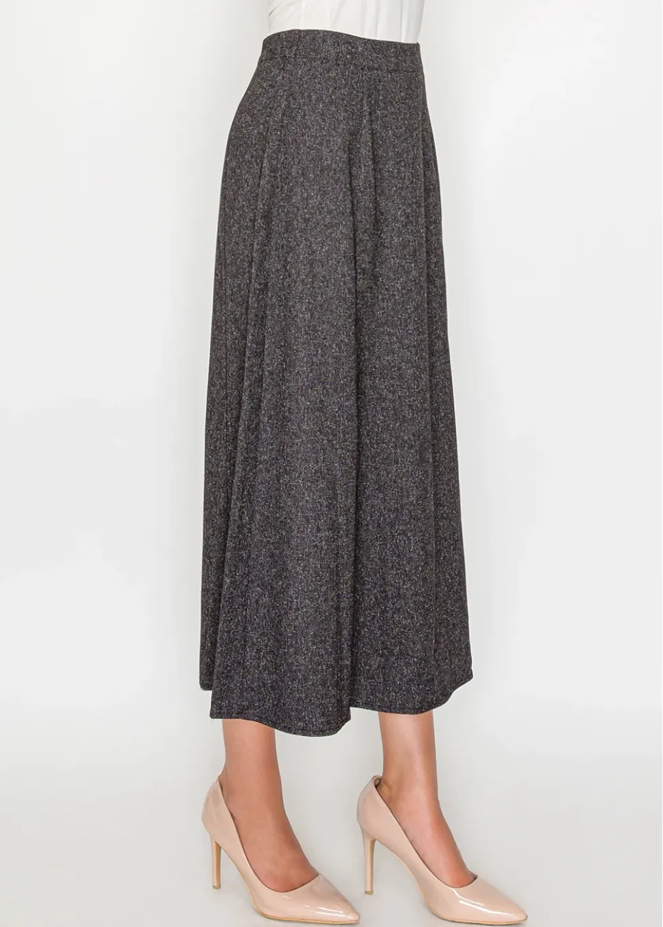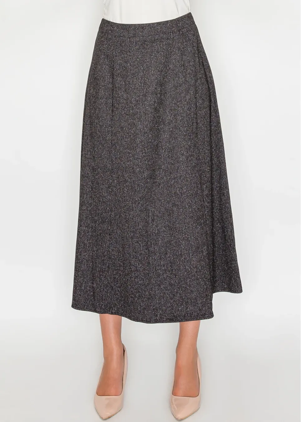 A classic charcoal midi skirt with a clean A-line shape. Easy to style for both workdays and weekends.
