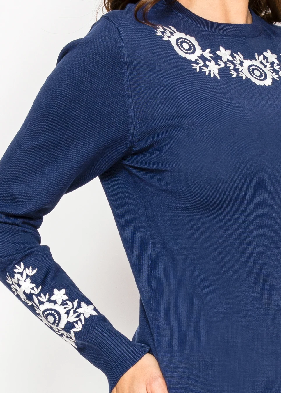 Deep Blue Knit with Framed Floral Embroidery