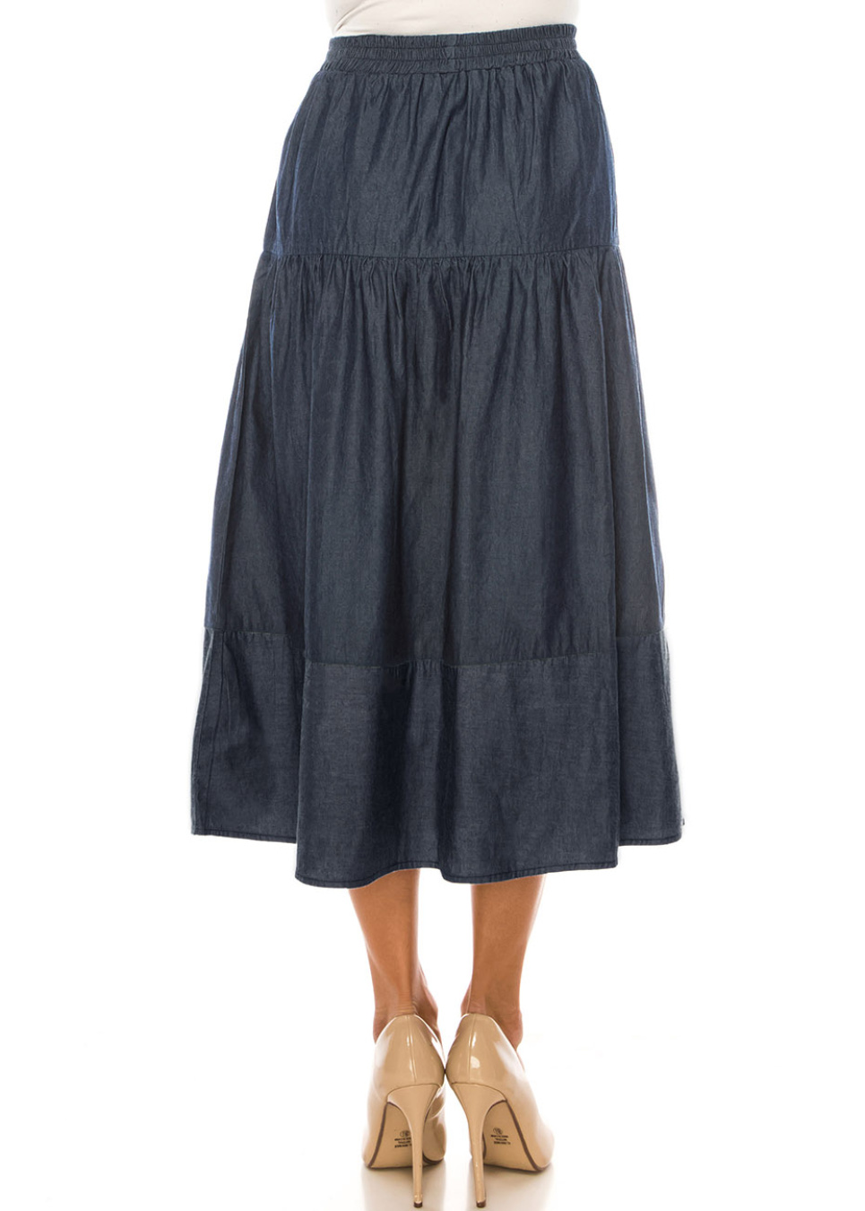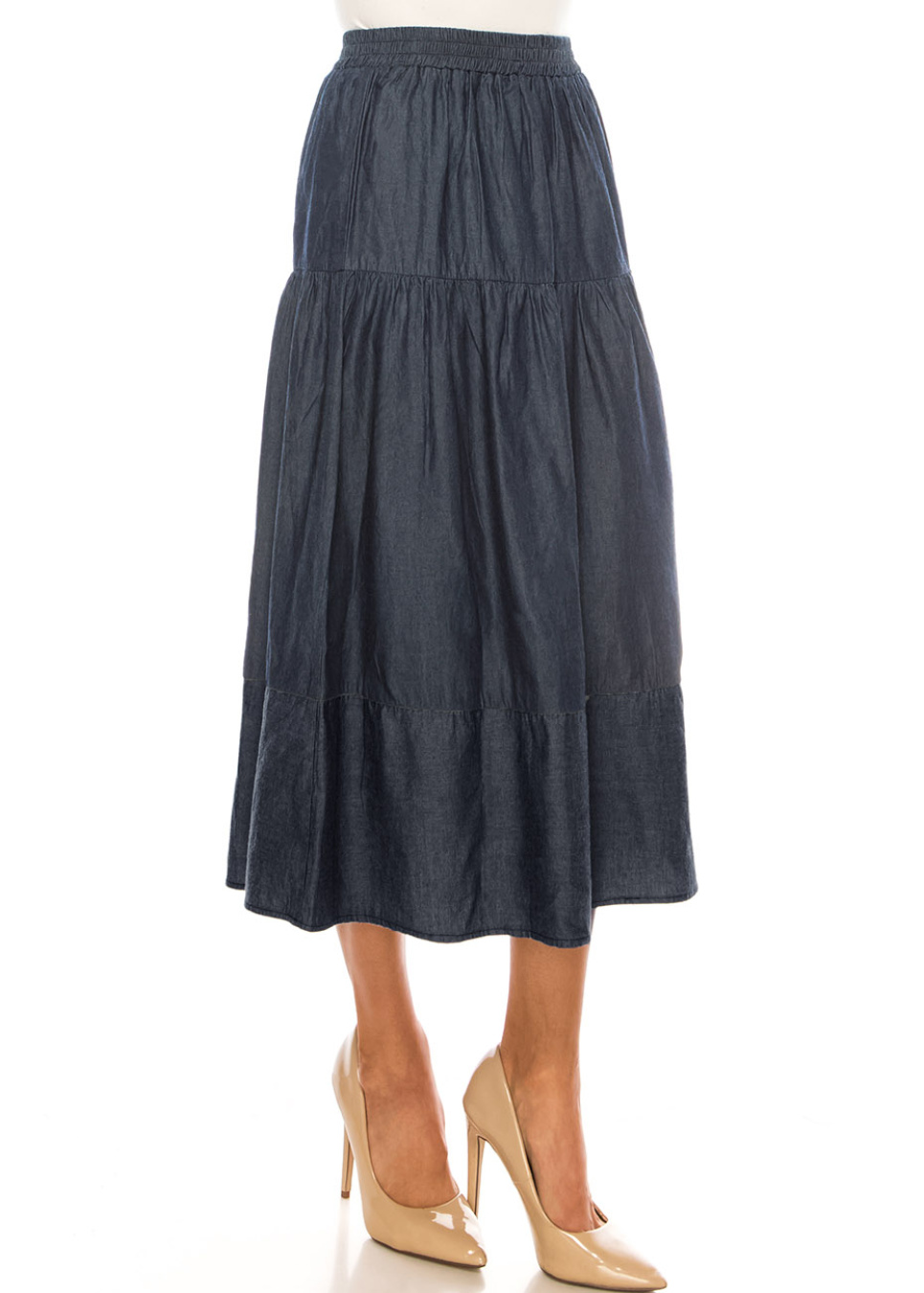 Denim Essential Tiered Midi Skirt