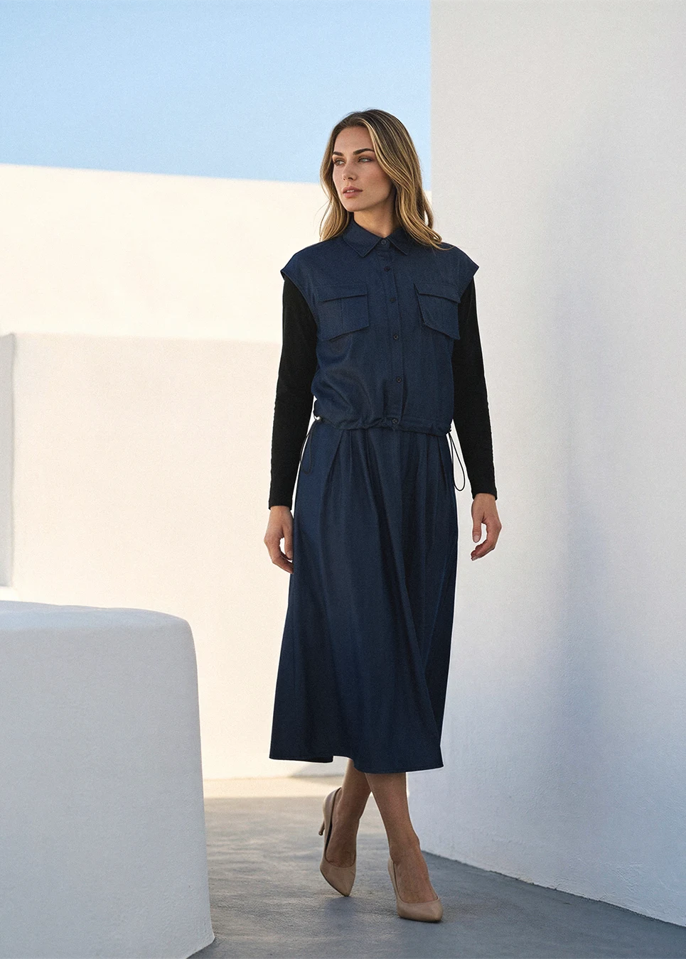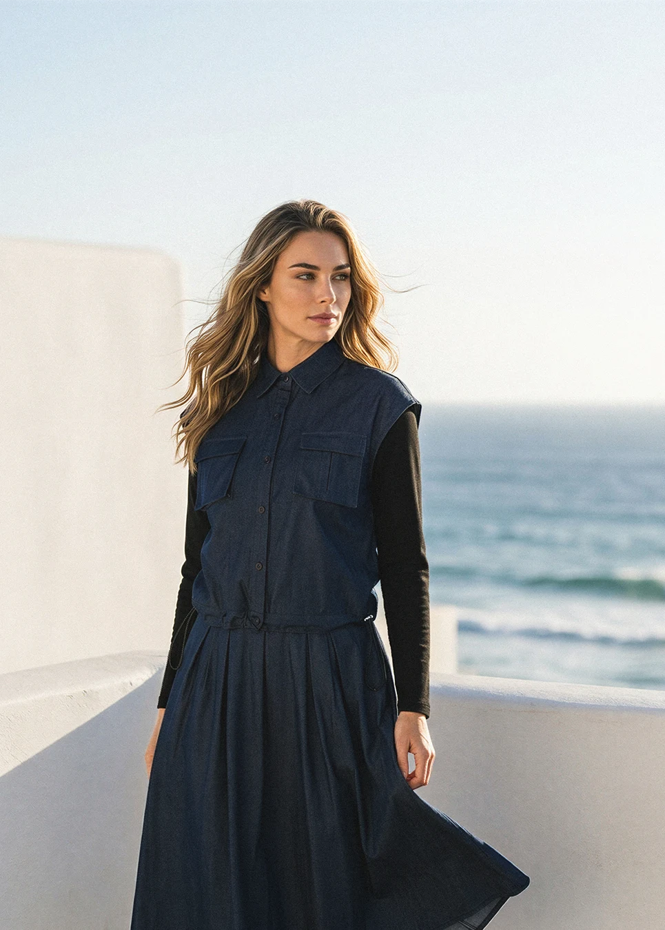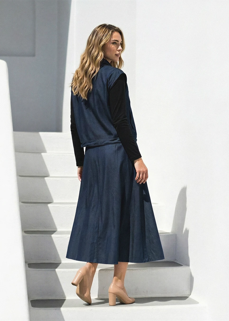 Denim Navy Set with Multi-Skirt Styling