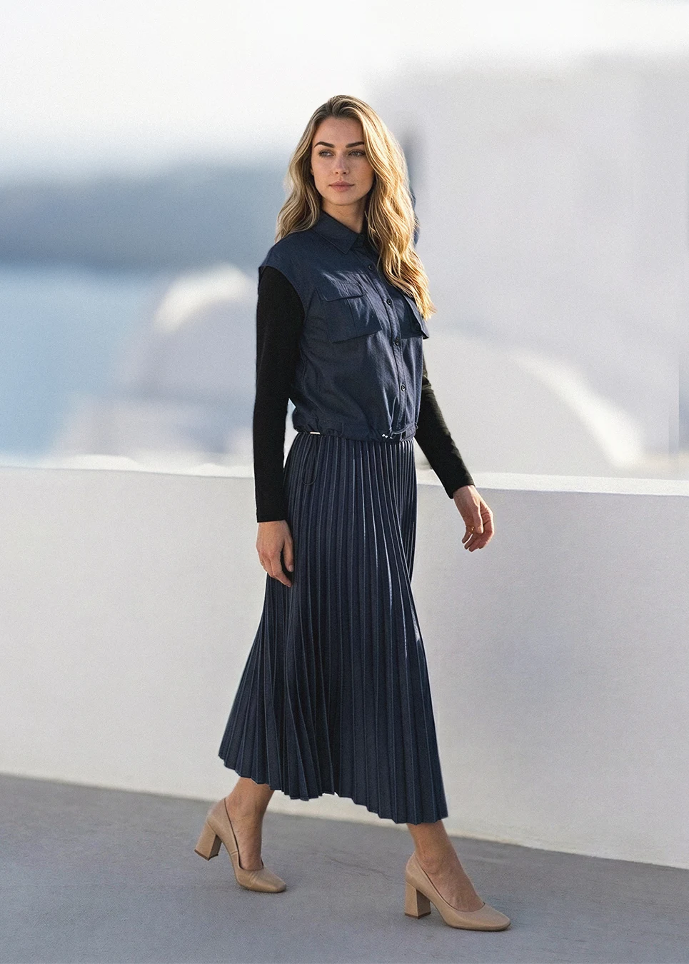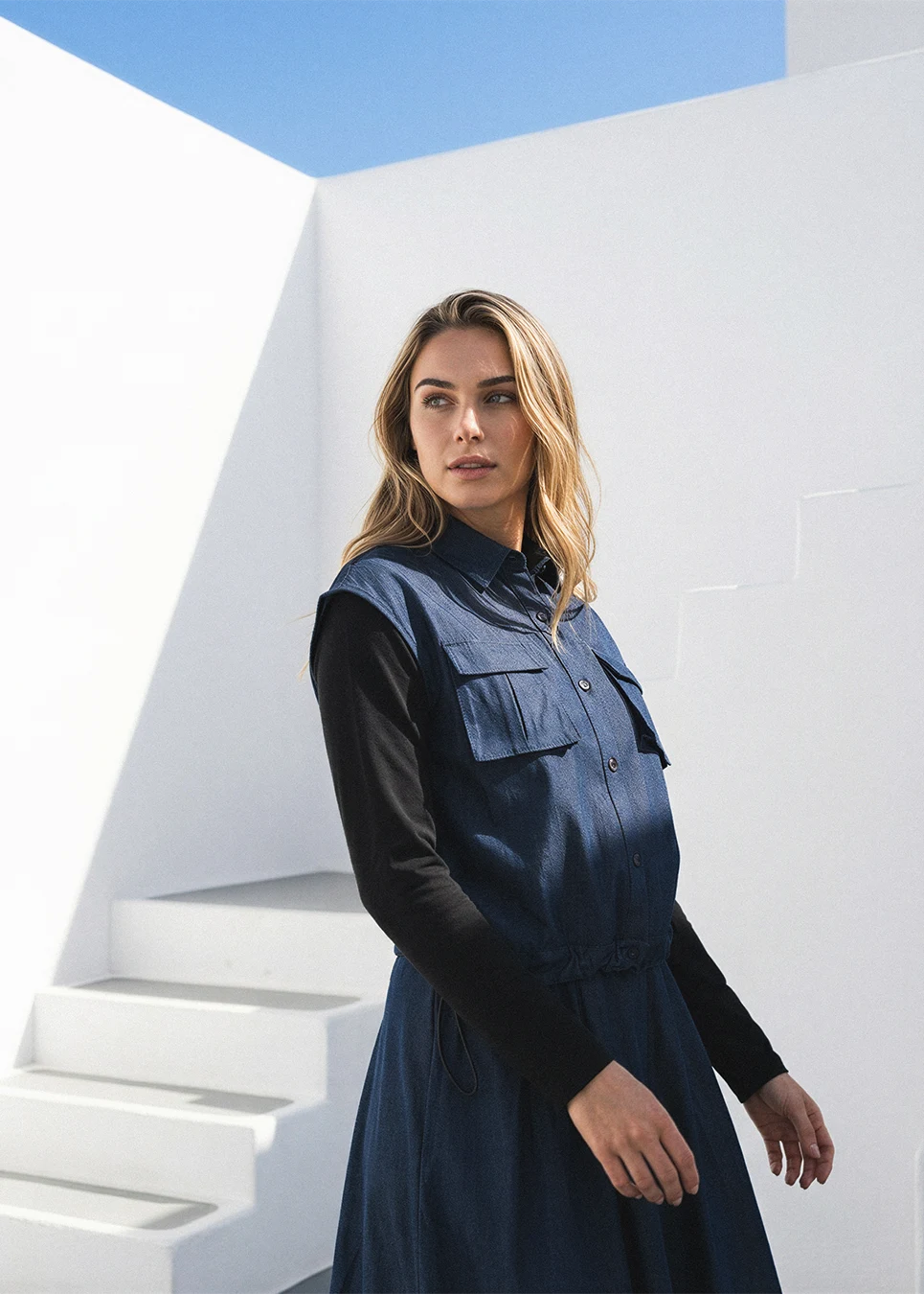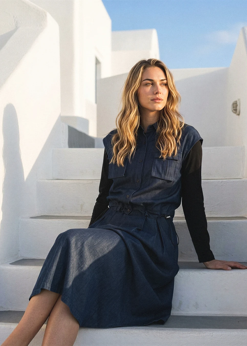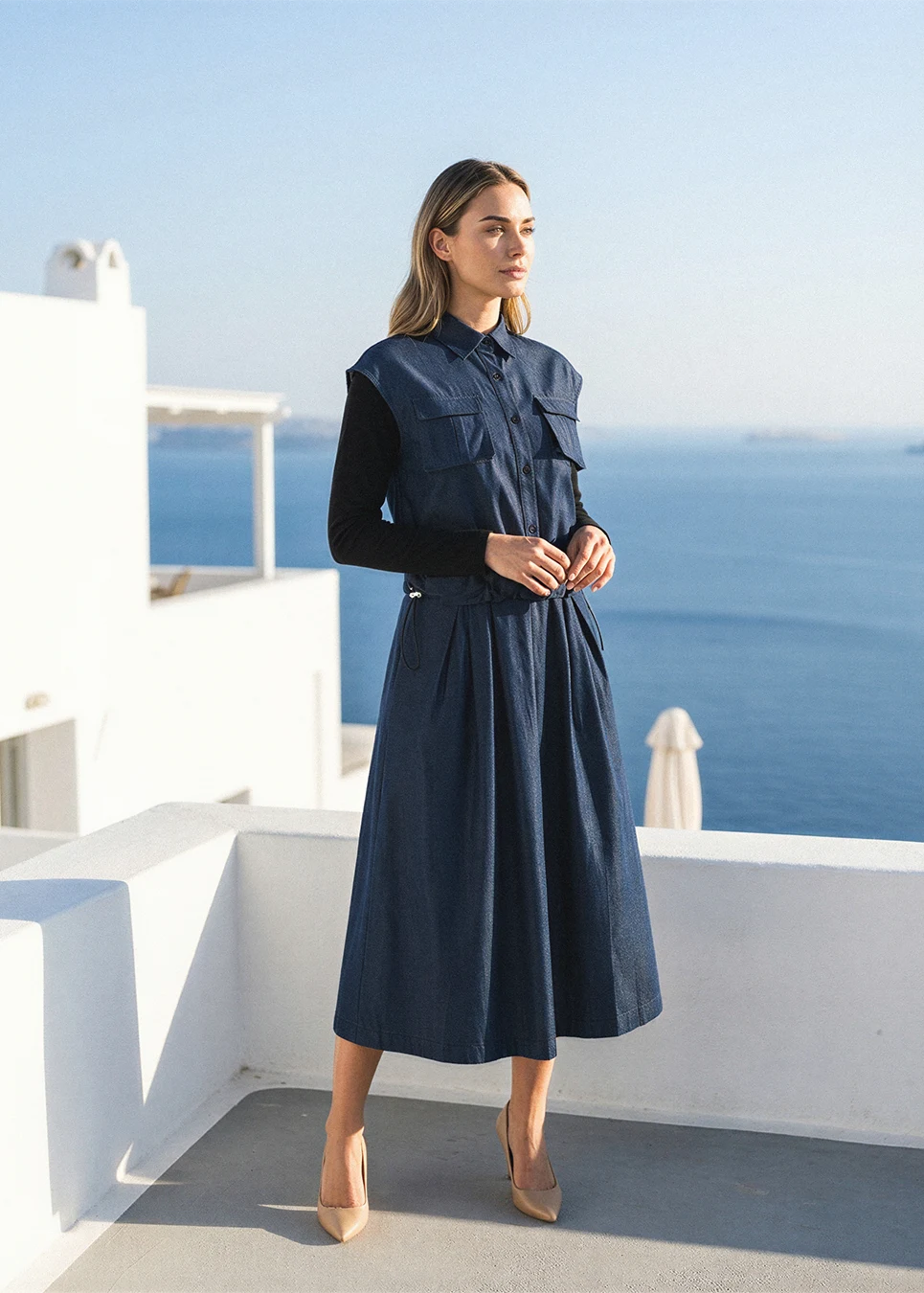 Denim Navy Set with Multi-Skirt Styling