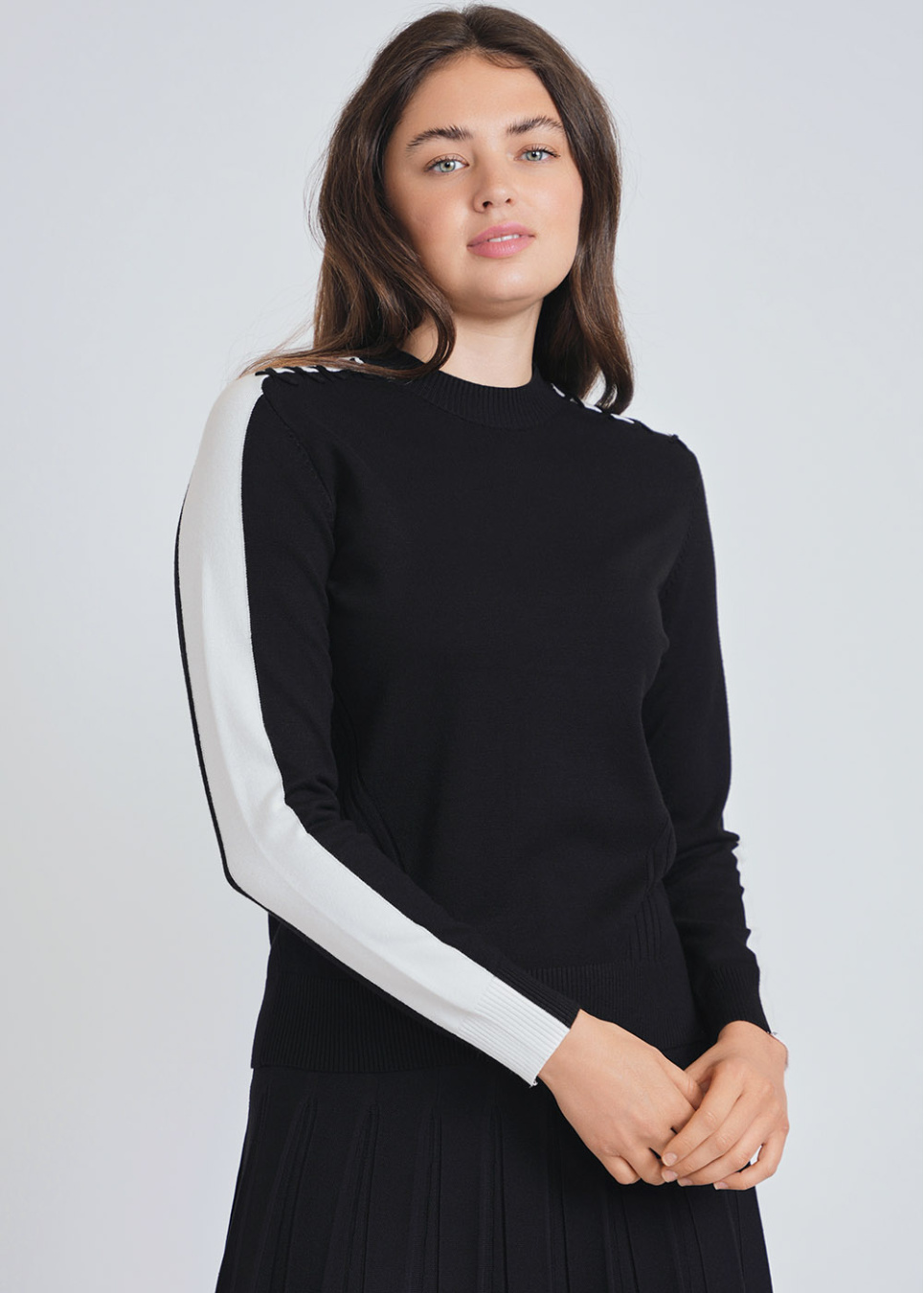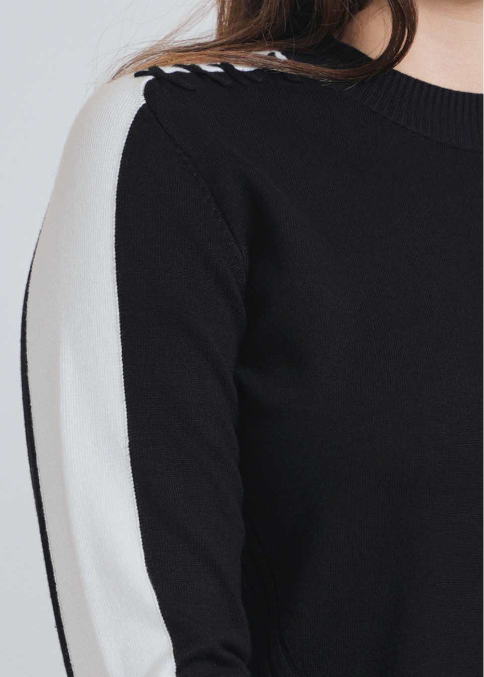 Distinctive Black Knit with Eye-Catching White Sleeve Bands