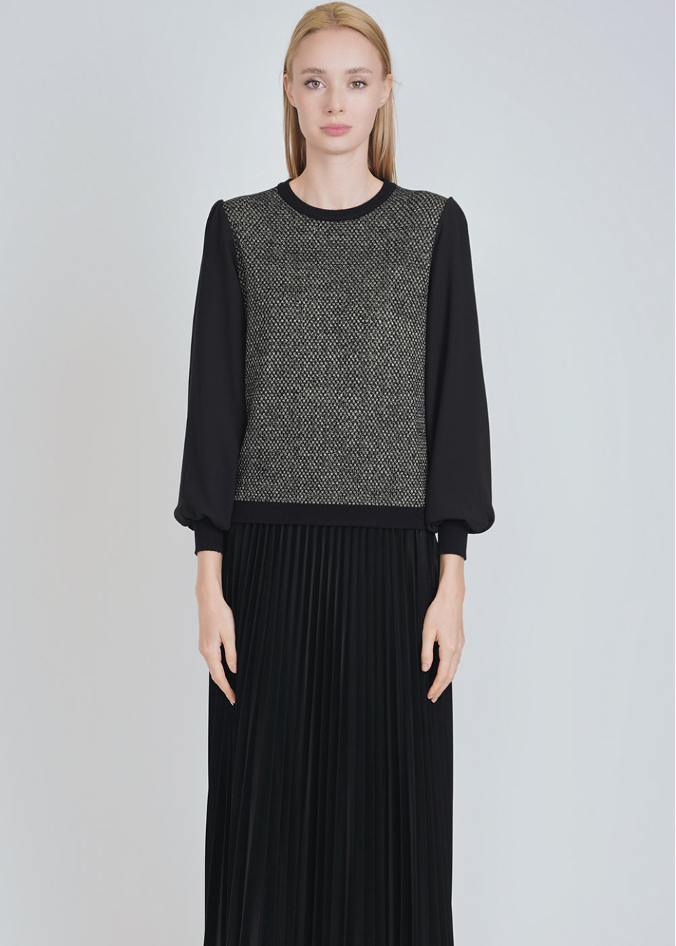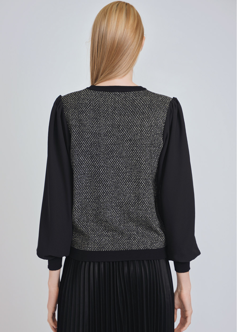 Dual-Tone Sweater with Voluminous Sleeves