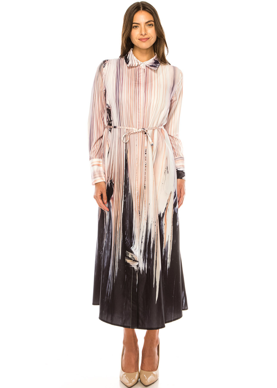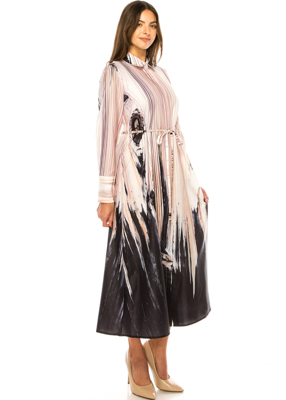 Beige Brushstroke Midi Dress