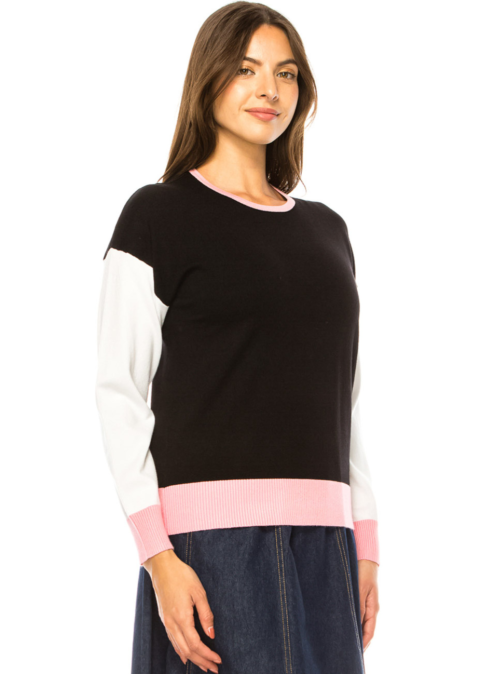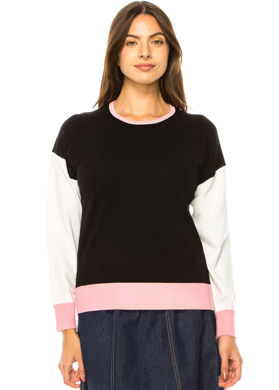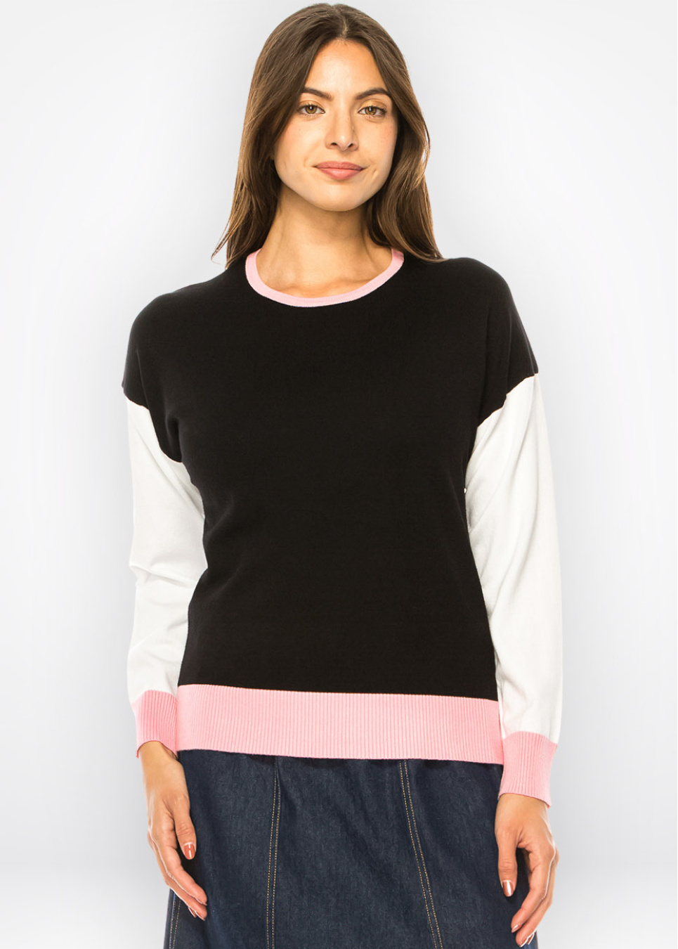 Elegant Trio-Tone Knit Pullover