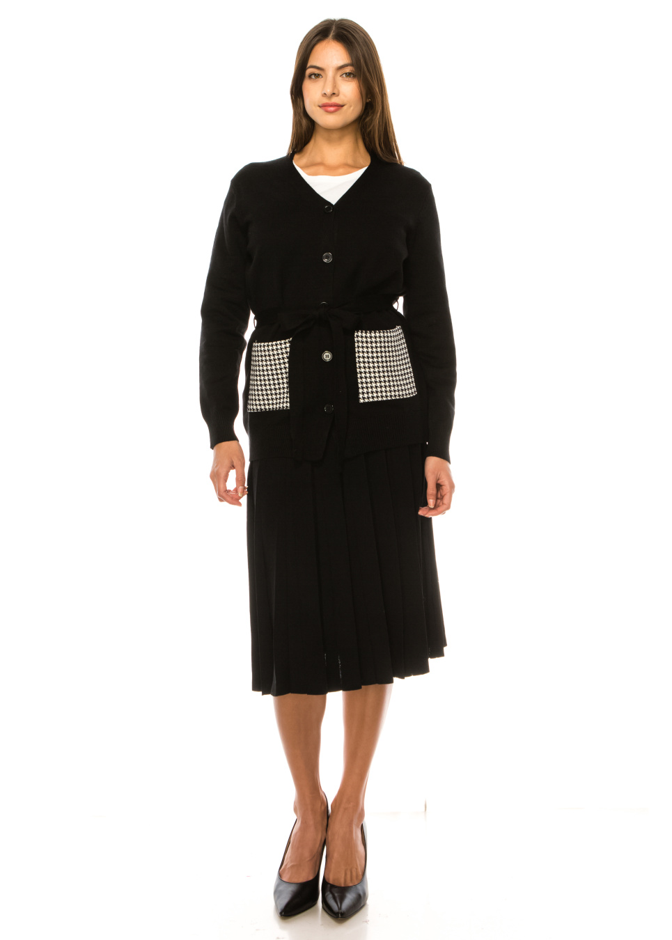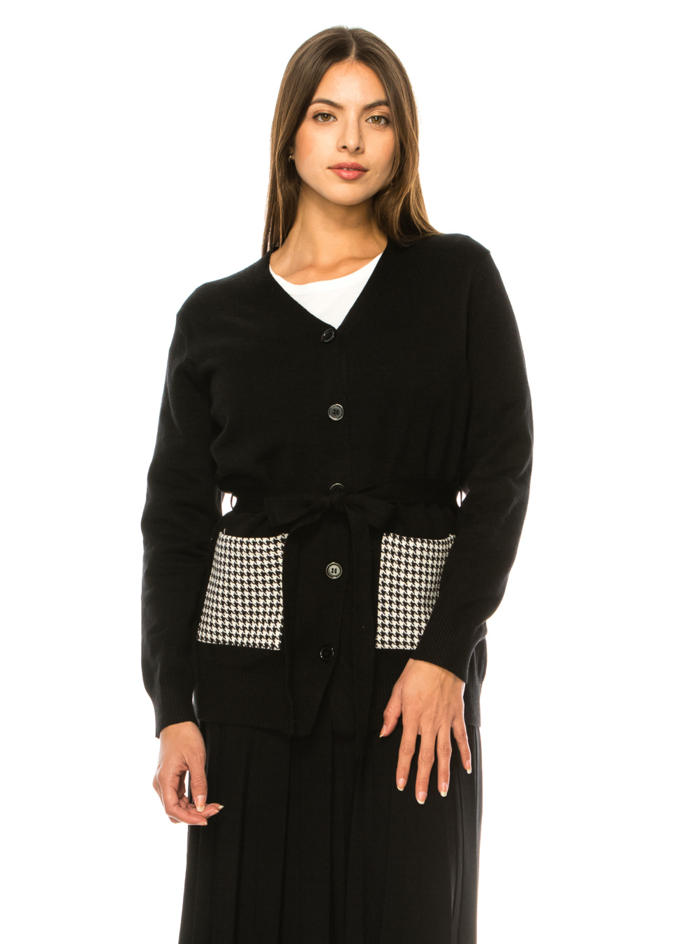 Cardigan with a belt in black