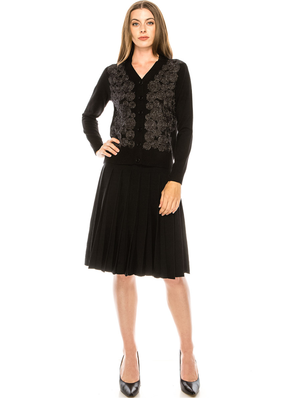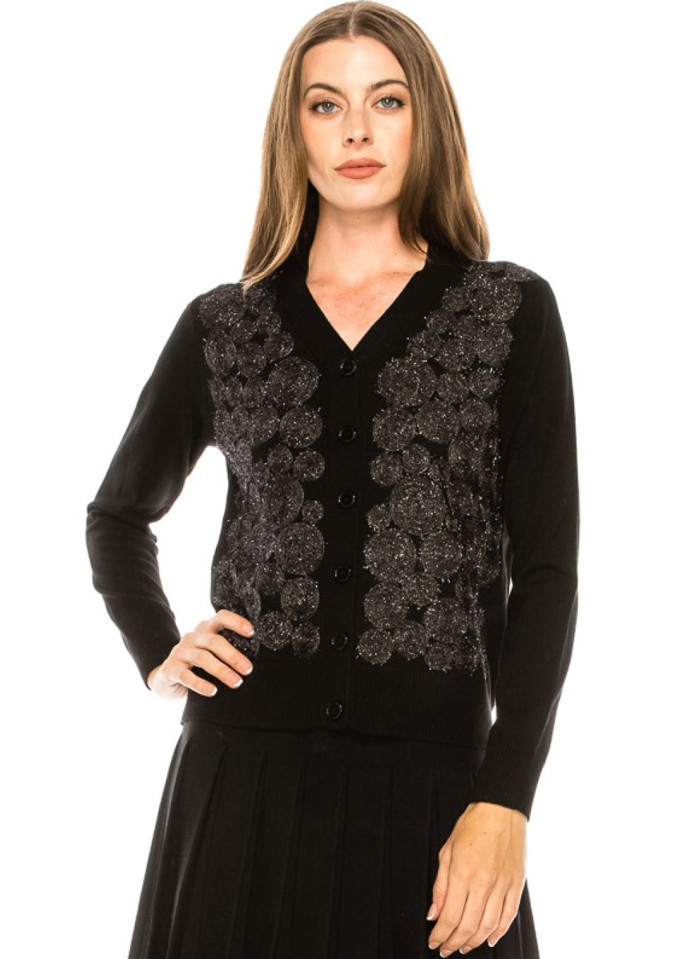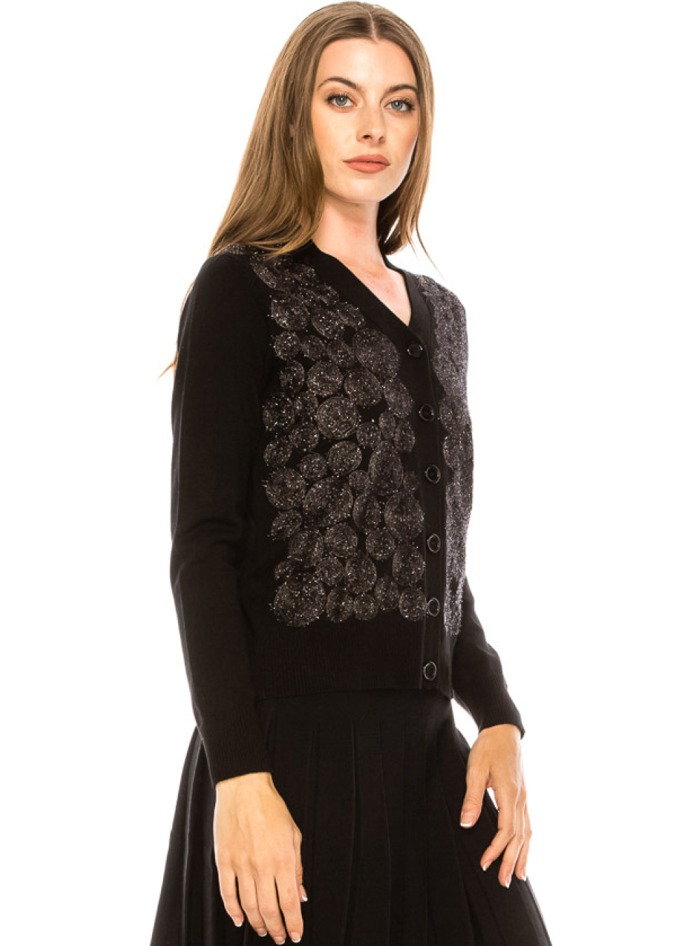 Embellished button-down cardigan in black