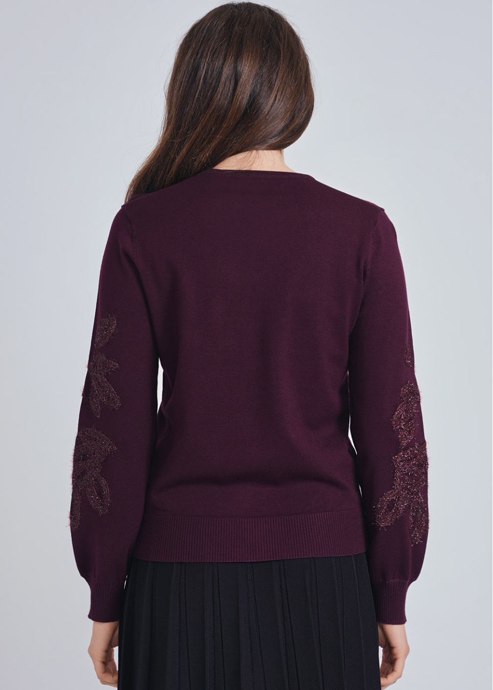 Embrace Elegance: Burgundy Sweater with Detailed Sleeve Design