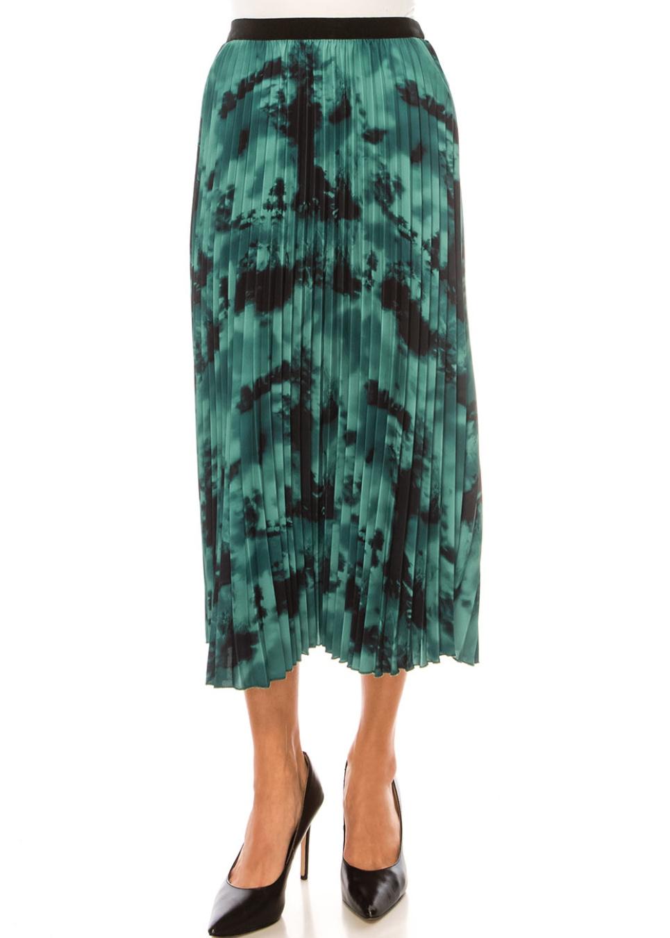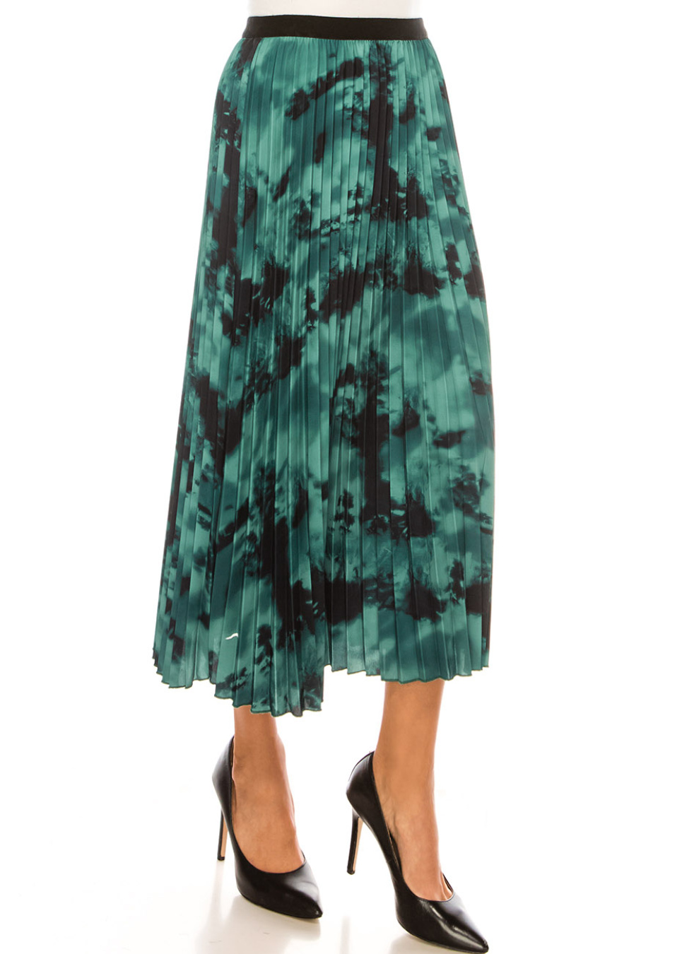 Emerald Elegance Pleated Midi Skirt