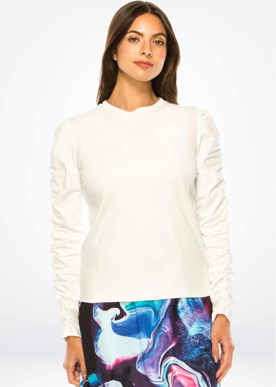 Essential White Ruched-Sleeve Tee