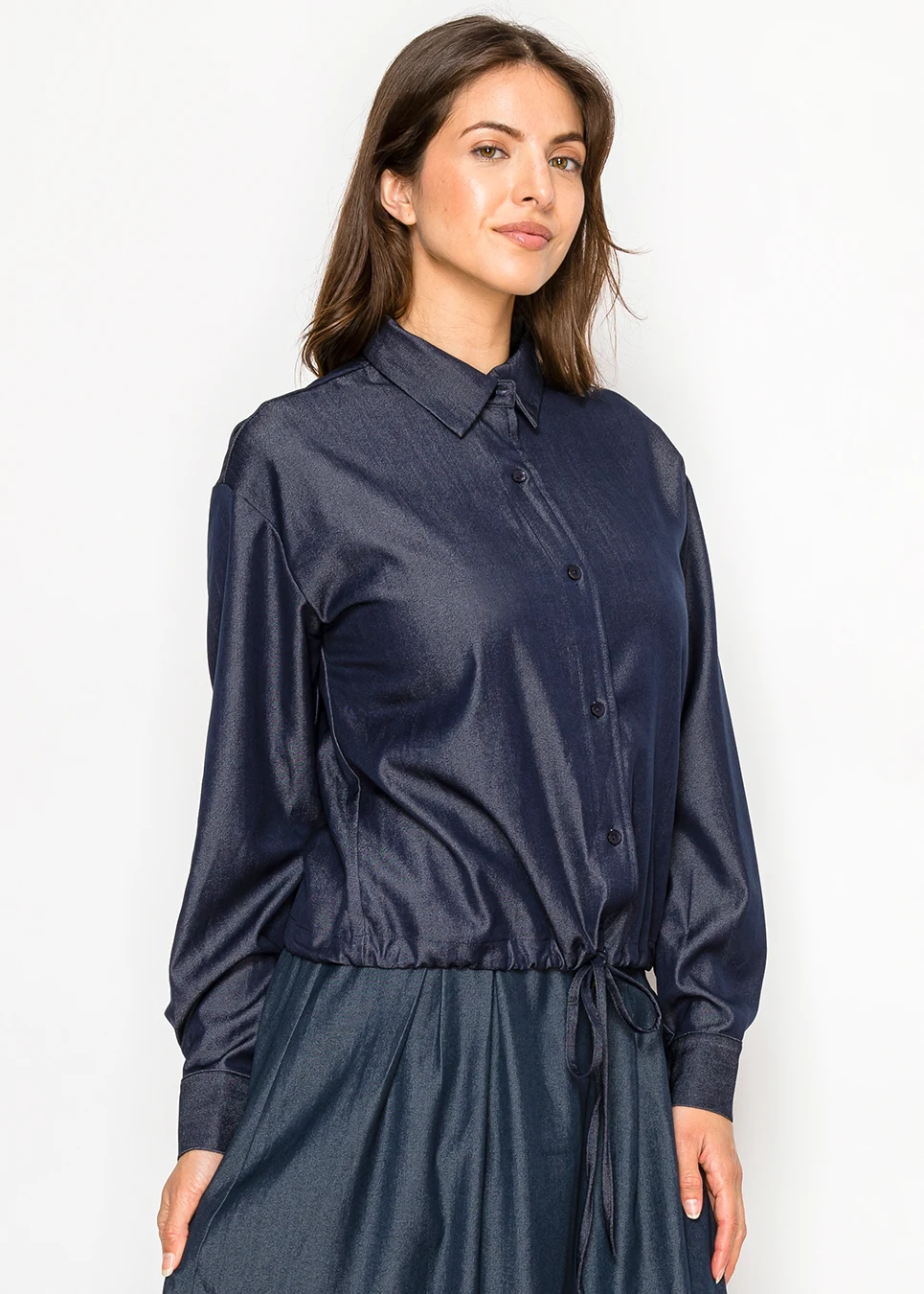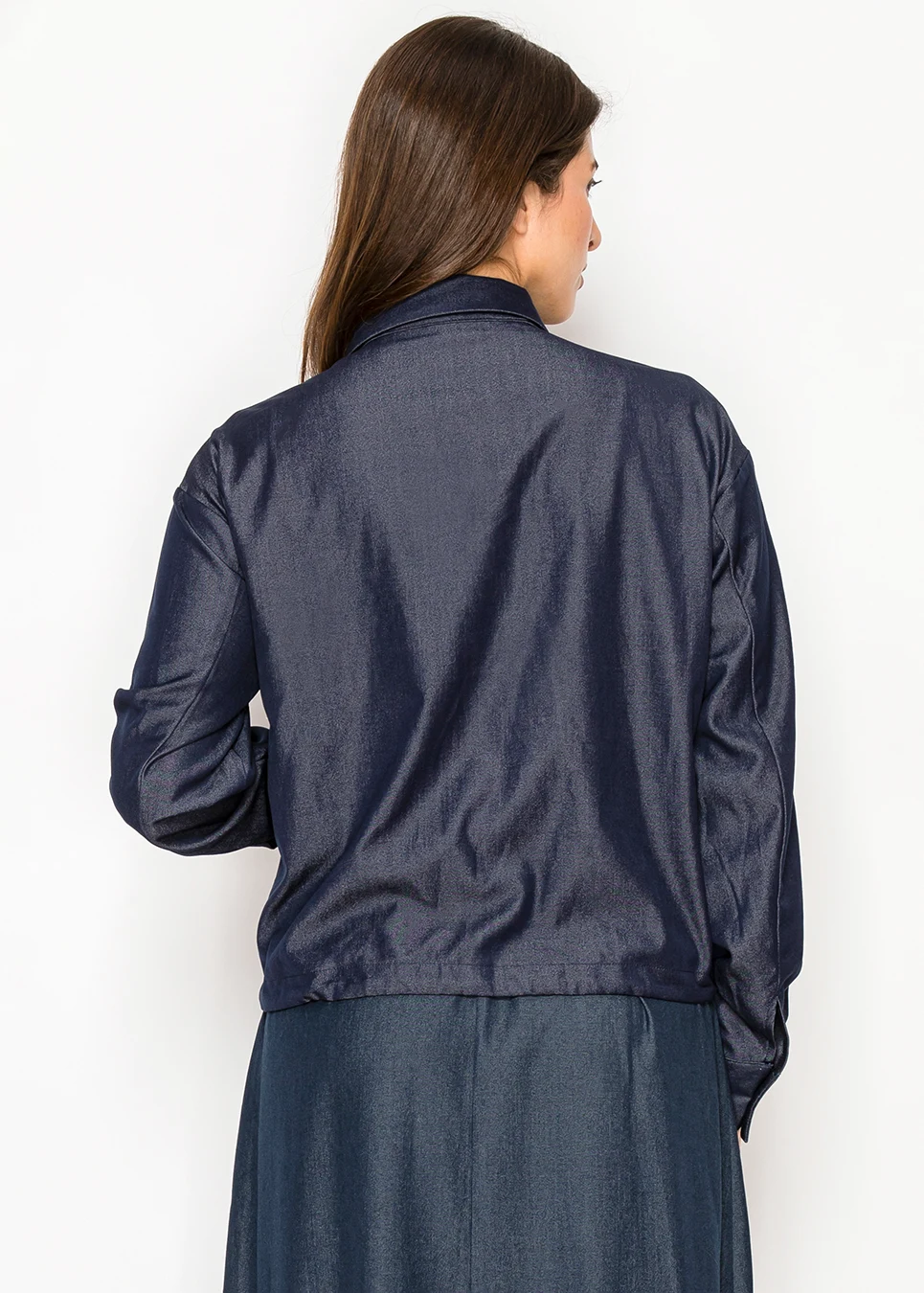Denim, but done in a way that feels polished. The fabric holds its shape beautifully while still giving you enough stretch to move comfortably through the day.